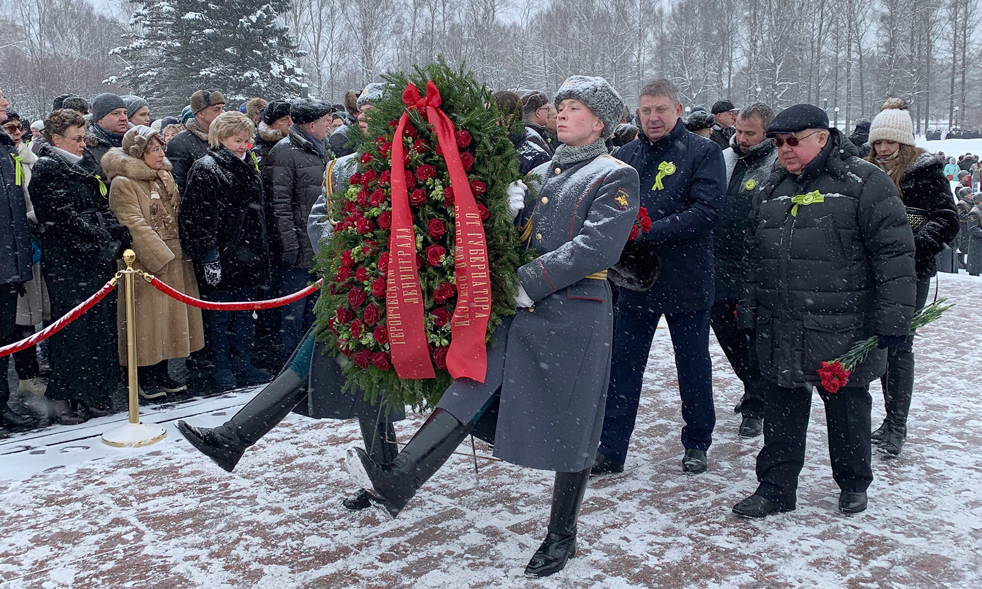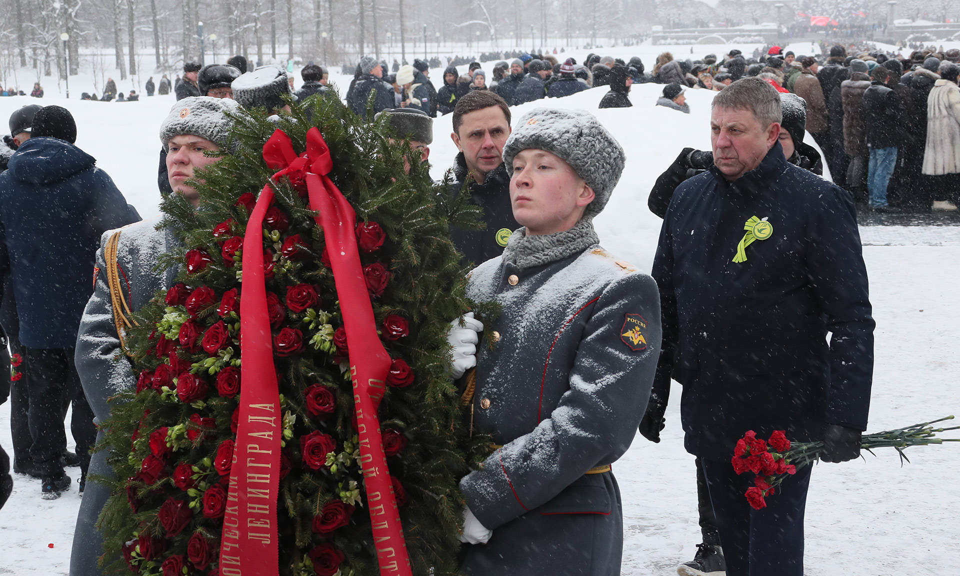 Траурные церемонии сегодня состоялись также на Серафимовском кладбище, на площади Победы, у Триумфальной Арки Победы в Красном Селе, на Смоленском мемориальном кладбище и других местах, связанных с историей блокады Ленинграда.