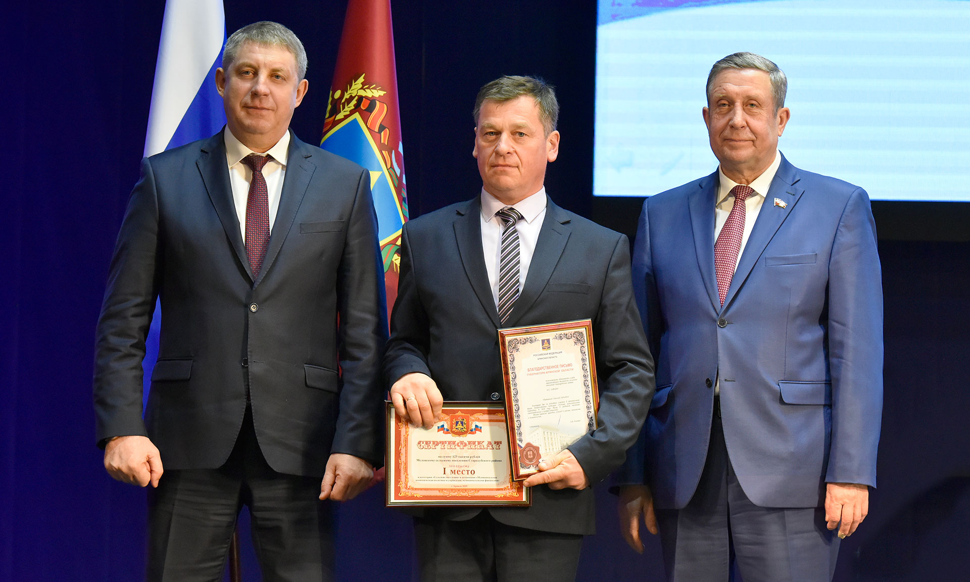 Меленское сельское поселение Стародубского района награждено за первое место в категории «Сельские поселения» в номинации «Муниципальная экономическая политика и управление муниципальными финансами», Отрадненское сельское поселение Брянского района — за второе место, Высокское сельское поселение Мглинского района — за третье место.