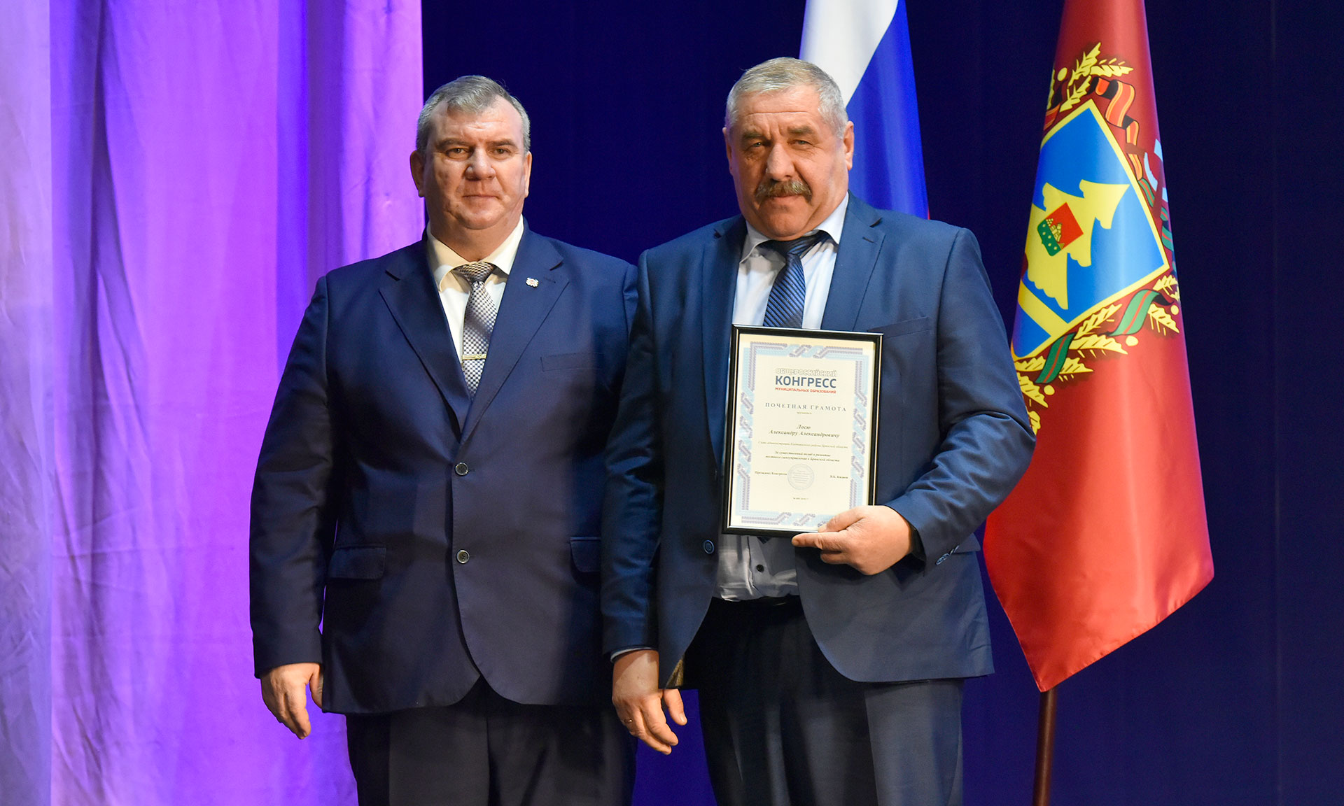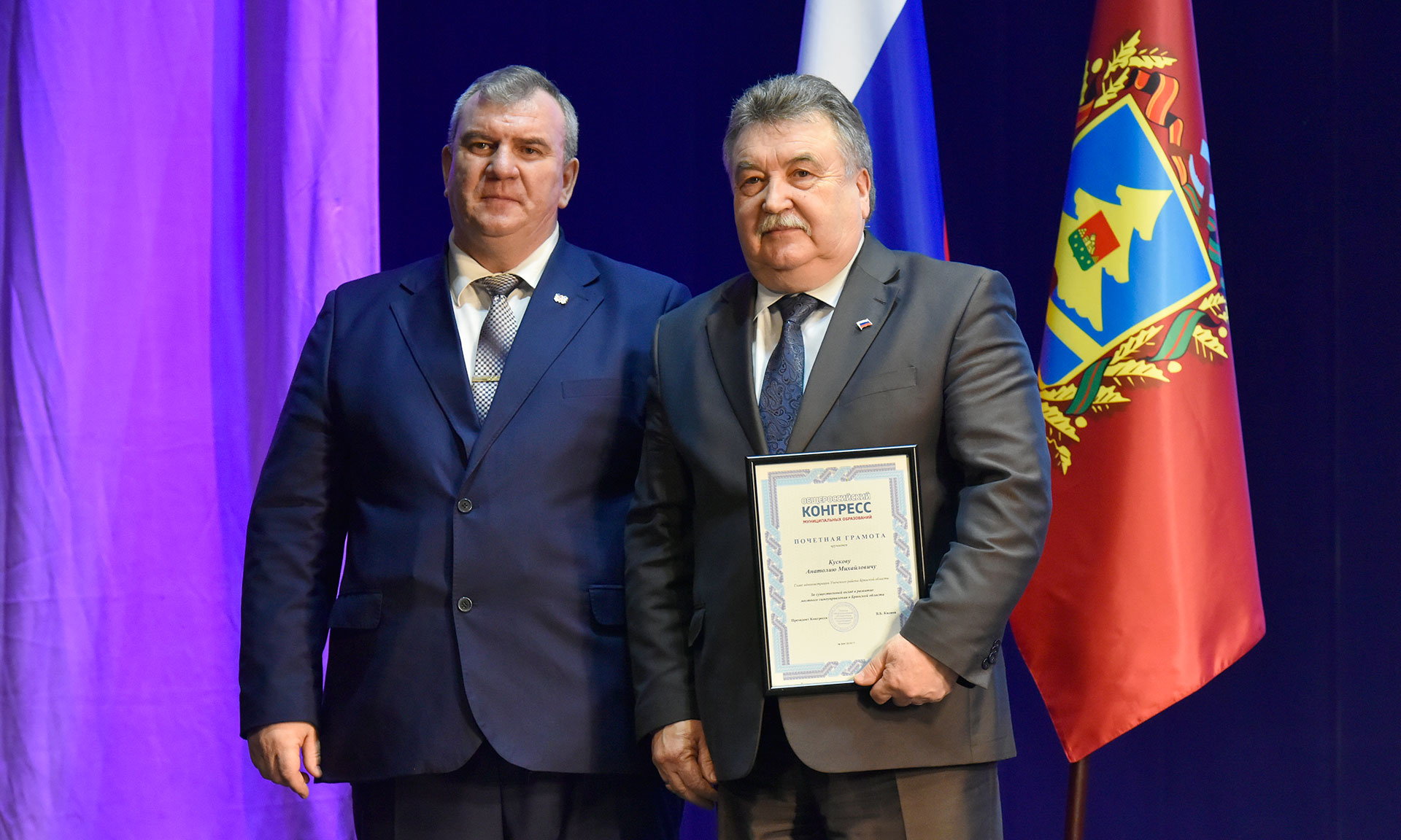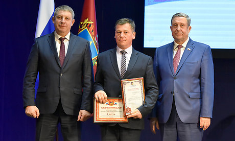Сергей Лавокин вручил награды Общероссийского конгресса муниципальных образований. За существенный вклад в развитие местного самоуправления в Брянской области Почетными грамотами Общероссийского конгресса муниципальных образований награждены глава администрации Советского района города Брянска Алексей Колесников, глава администрации Унечского района Анатолий Кусков, глава администрации Клетнянского района Александр Лось. За активную работу по развитию местного самоуправления в Брянской области Почетной грамотой Совета муниципальных образований Брянской области награжден глава администрации Суражского района Владимир Риваненко.