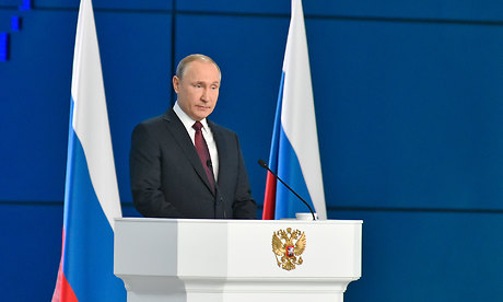 Работа по перспективным образцам и системам вооружений, о которых говорил в Послании прошлого года, продолжается — ритмично, без сбоев по плану. Началось серийное производство комплекса «Авангард», о котором сегодня уже упоминал. В этом году, как и планировалось, им будет оснащён первый полк РВСН. Проводится и цикл испытаний тяжёлой, беспрецедентной по мощности межконтинентальной ракеты «Сармат». Лазерные установки «Пересвет» и авиационные комплексы с гиперзвуковыми ракетами «Кинжал» в режиме опытно-боевого дежурства подтвердили свои уникальные характеристики, личный состав получил опыт их эксплуатации. В декабре этого года все поставленные в Вооружённые Силы «Пересветы» заступят на боевое дежурство. Продолжится и работа по расширению инфраструктуры базирования самолётов МиГ-31, оснащённых ракетами «Кинжал». Успешно проходит испытания крылатая ракета неограниченной дальности с ядерной двигательной установкой «Буревестник», а также подводный неограниченной дальности беспилотный аппарат «Посейдон».