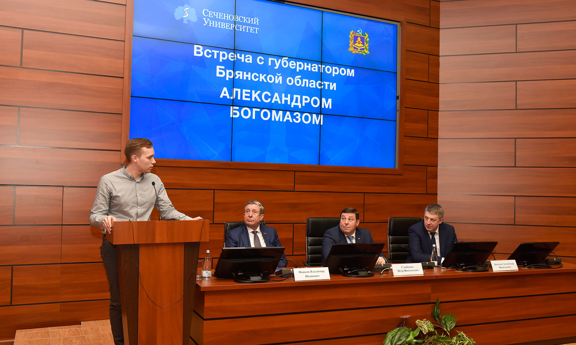 Губернатор Брянской области Александр Богомаз поблагодарил ректора Сеченовского университета Петра Глыбочко за возможность диалога со студентами из Брянска и области и обратился к присутствующим: