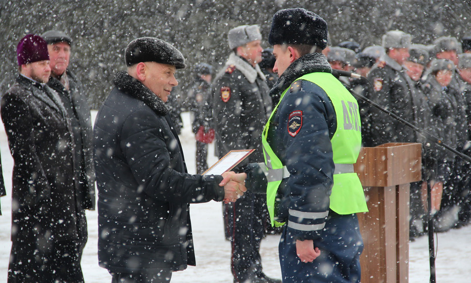 В канун Дня защитника Отечества председатель Брянской областной Думы Владимир Попков принял участие в гарнизонном разводе комплексных сил и средств, задействованных в обеспечении общественного порядка, общественной безопасности и безопасности дорожного движения.
