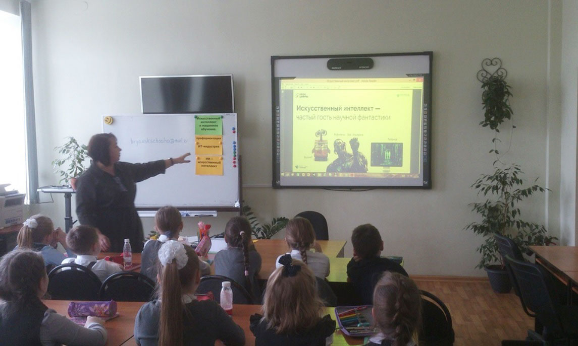 26 февраля 2019 г. в Брянском городском лицеи № 2 им. М. В. Ломоносова был проведен открытый урок «Урок Цифры» на тему «Искусственный интеллект и машинное обучение», на котором с приветственным словом выступил представитель Управления информационных технологий департамента экономического развития Брянской области Надежда Рощина. Она рассказала о развитии отрасли информационных технологий в России и Брянской области на современном этапе и о будущем данного направления.