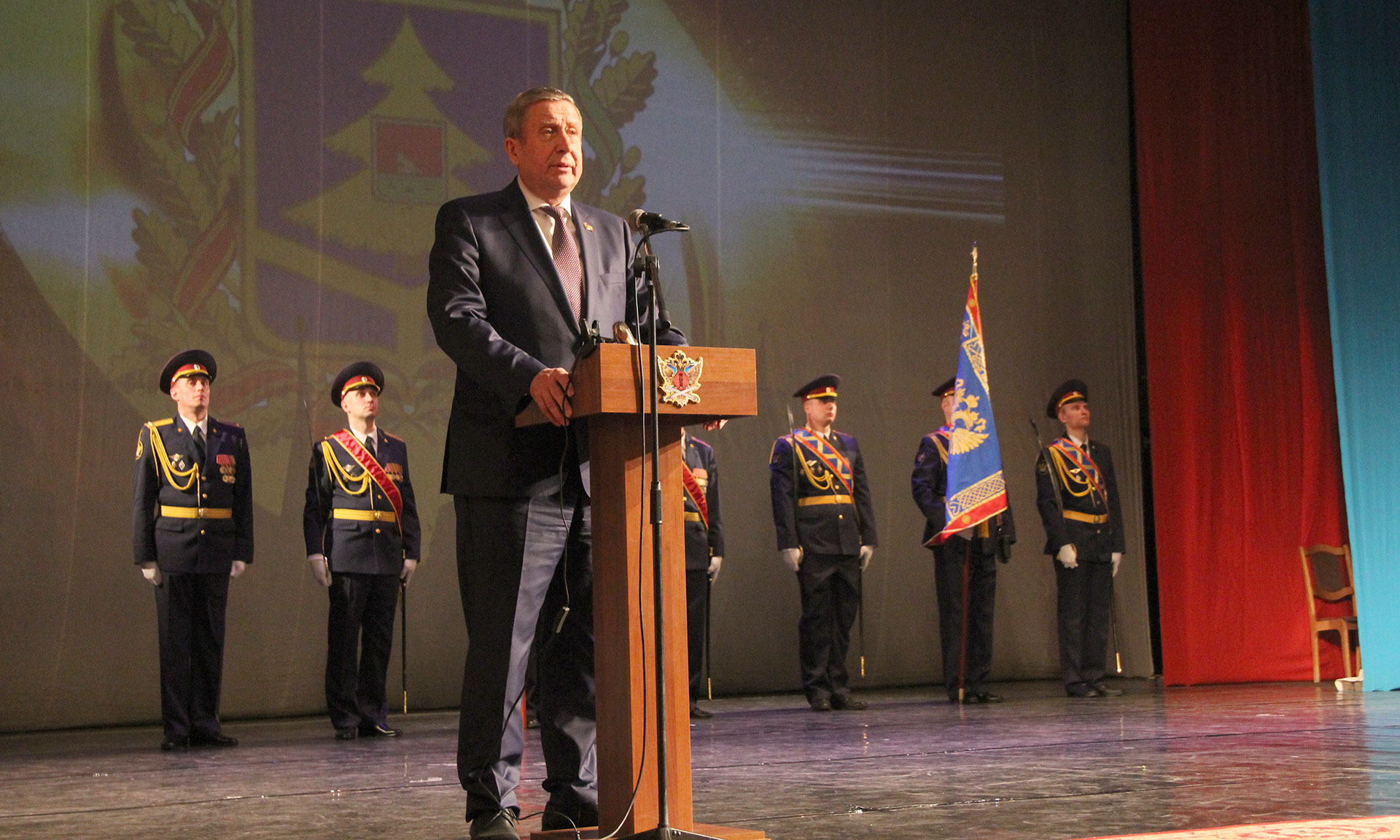 Участников торжественного мероприятия поздравил председатель Брянской областной Думы Владимир Попков.