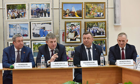 На встречу с педагогами вместе с Губернатором Александром Богомазом, председателем Брянской областной Думы Владимиром Попковым приехали заместители Губернатора Владимир Оборотов и Юрий Мокренко, директор департамента образования и науки Брянской области Татьяна Кулешова.