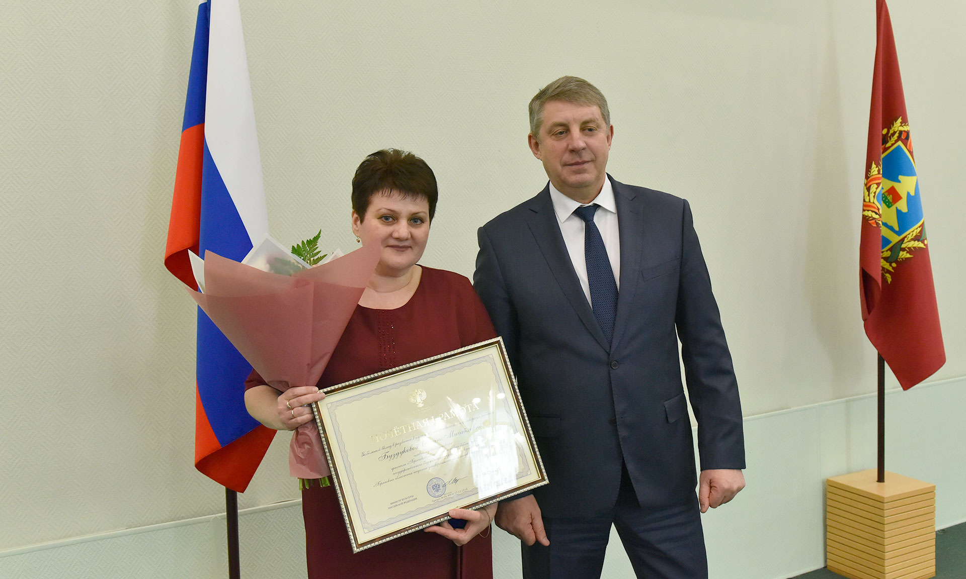 За большой вклад в развитие культуры, многолетнюю плодотворную работу Почетной Грамотой Министерства культуры Российской Федерации награждена Буздукова Оксана Михайловна — главный библиотекарь отдела информационно-просветительской и массовой работы Брянской областной научной универсальной библиотеки им. Ф. И. Тютчева.