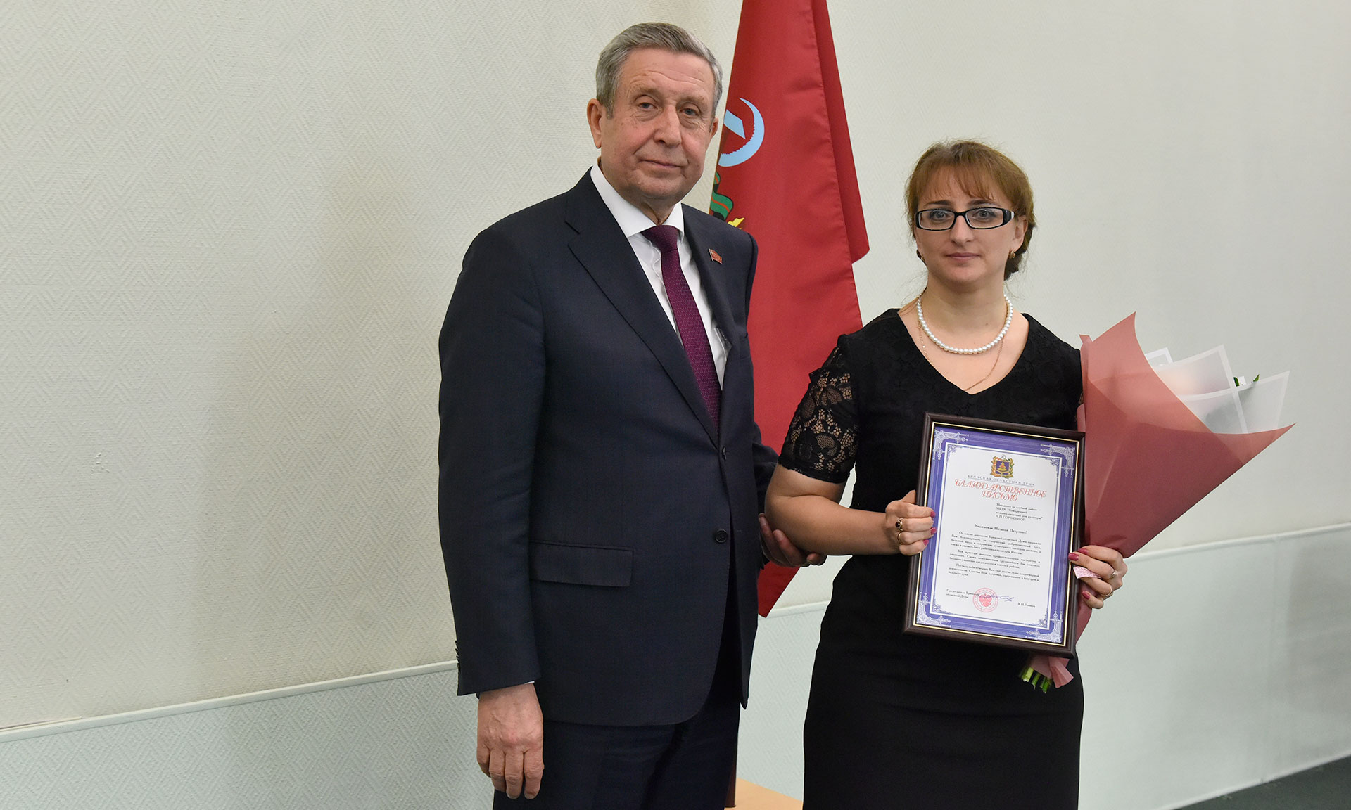 За многолетний добросовестный труд в сфере культуры Брянской области и в связи с профессиональным праздником — Днем работника культуры России — Благодарственным письмом Брянской областной Думы награждена Филиппова Людмила Александровна — заместитель директора Брянского государственного краеведческого музея.