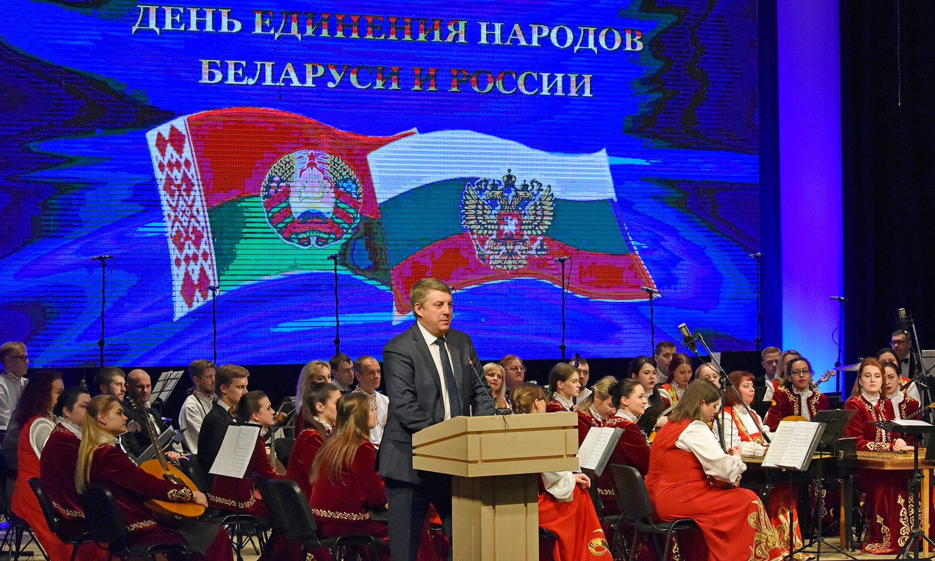 2 апреля Губернатор Брянской области Александр Богомаз принял участие в торжественном мероприятии, посвященном Дню единения Белоруссии и России.