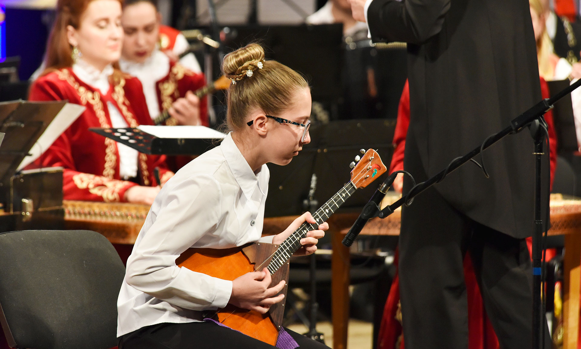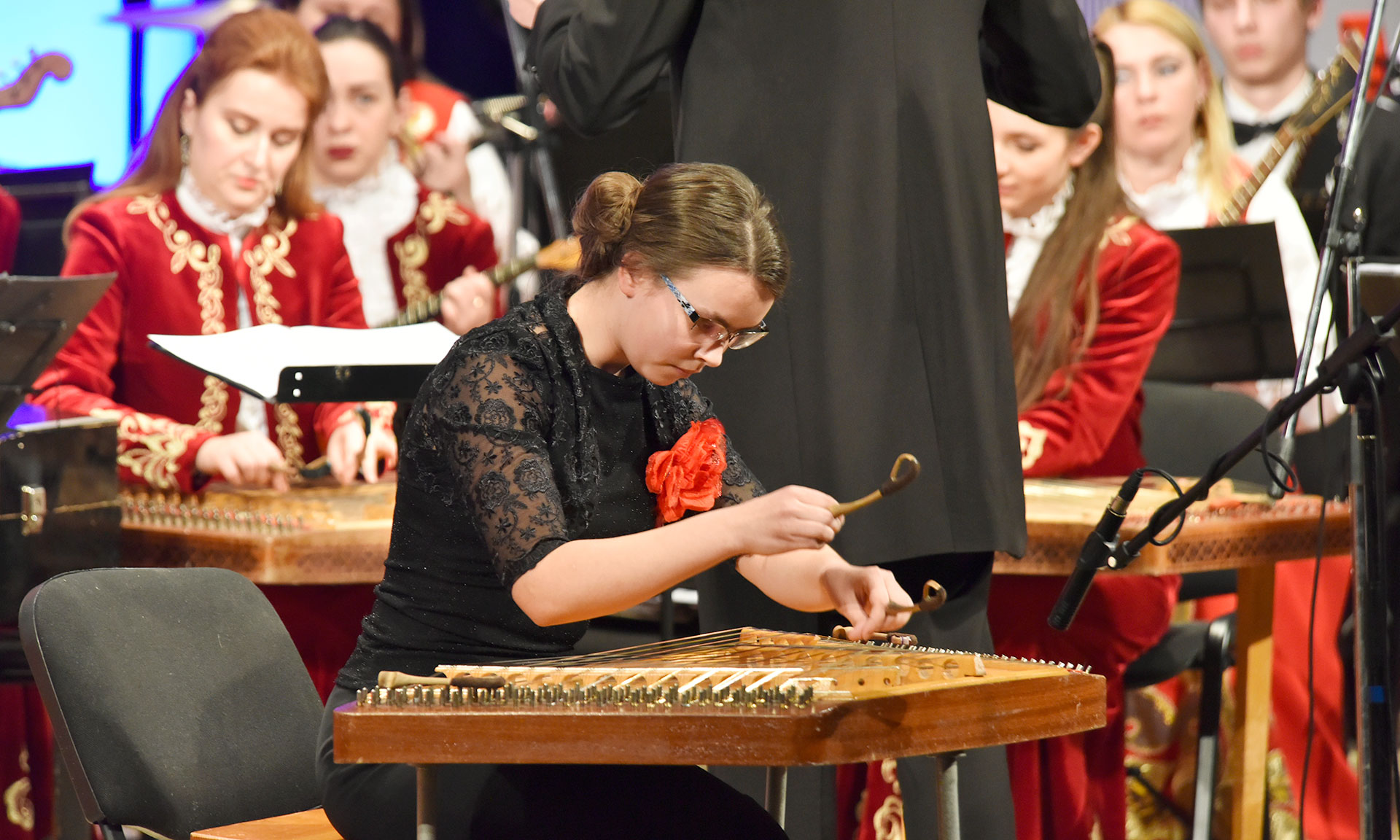 Продолжилось торжественное мероприятие, посвященное Дню единения Белоруссии и России, совместным праздничным концертом от оркестра народных инструментов Могилевской областной филармонии и Брянского городского оркестра народных инструментов «Таланты без границ».