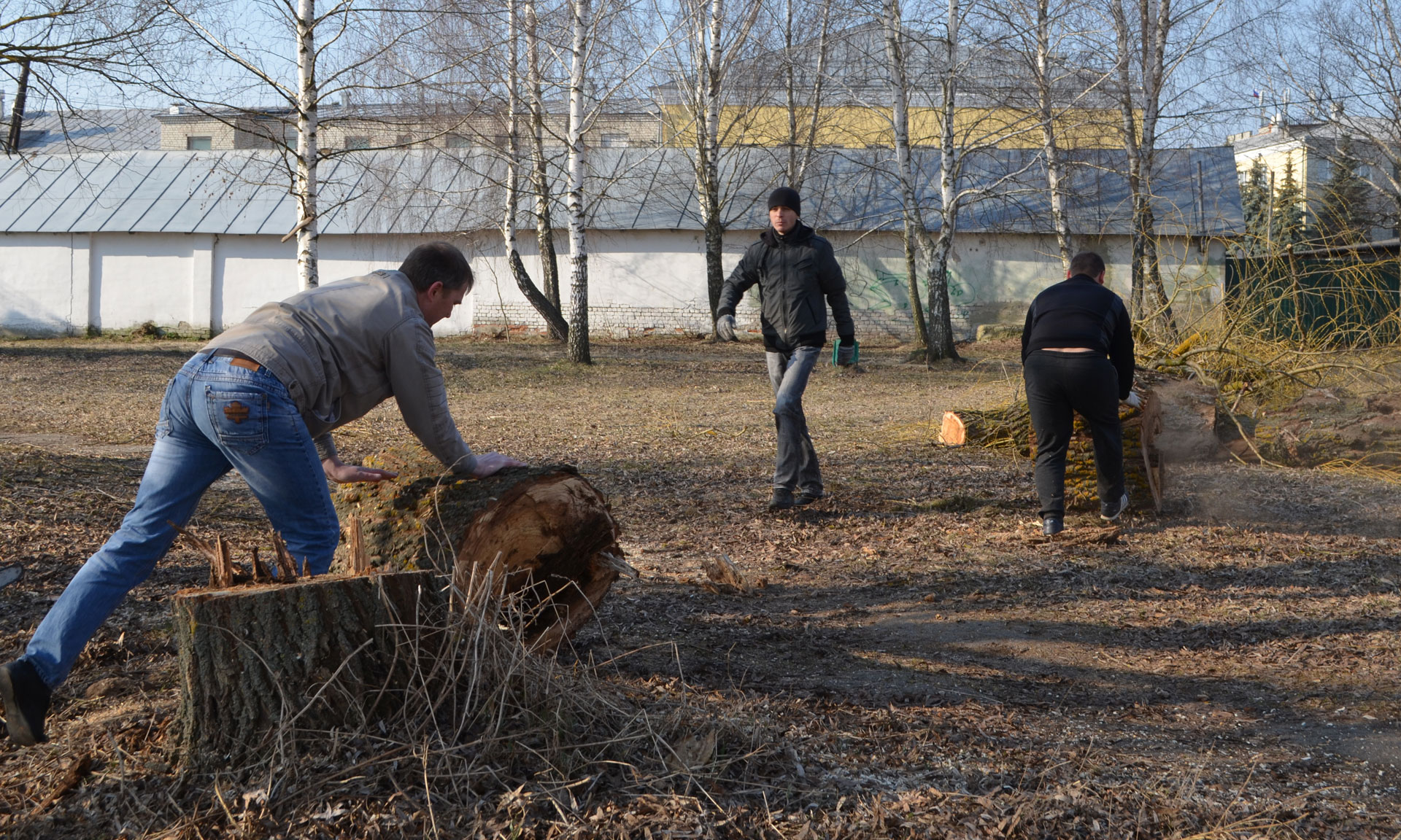 Работники бюджетных организаций п. Локоть работали на территории бывшего дворцового комплекса Великого князя Михаила Романова у фонтана. Здесь женщины убирали прошлогоднюю листву, сгребали её в кучи, а мужчины выпиливали и вырубали лишнюю поросль, сломанные в зимнее время ветви деревьев.