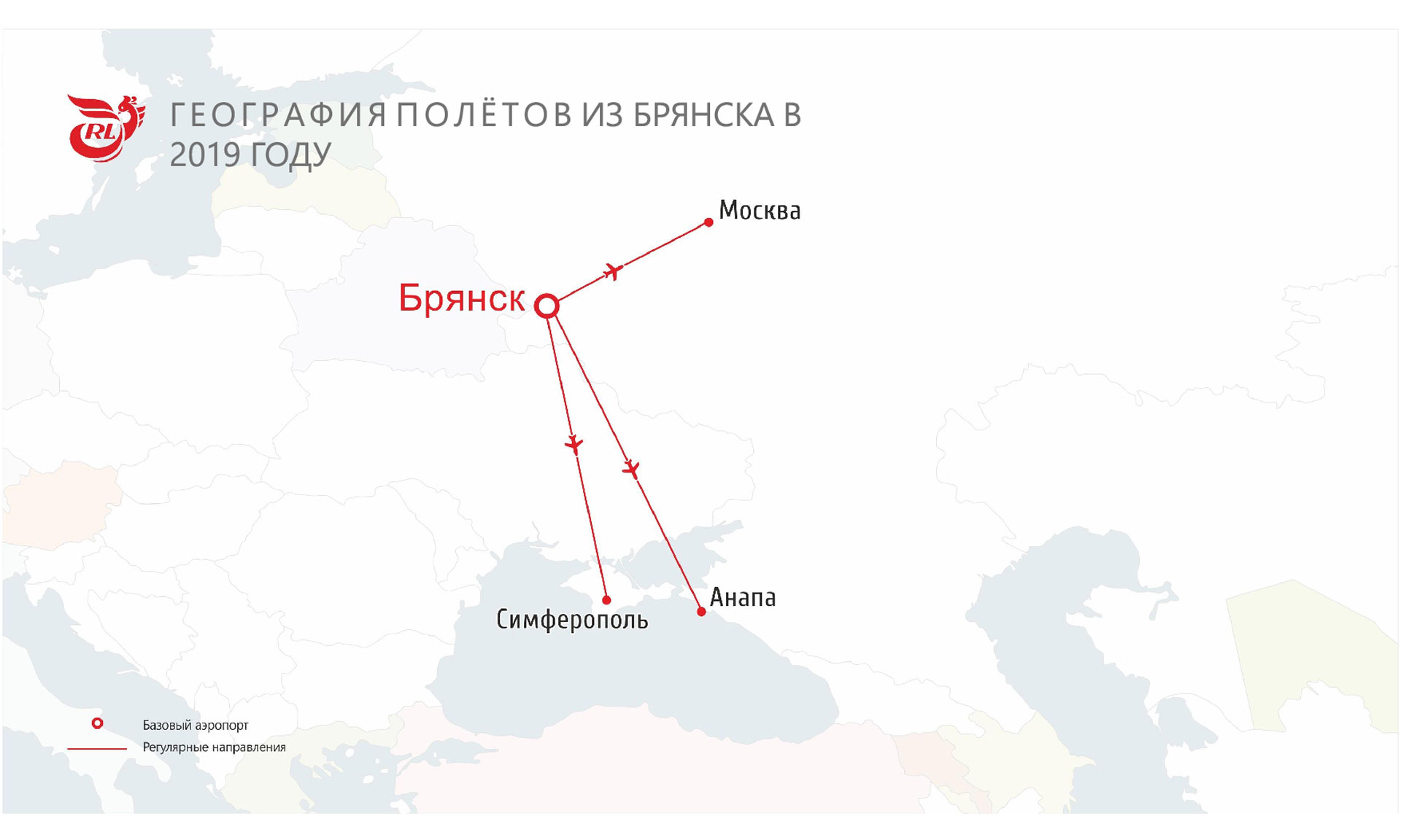 В этом году из международного аэропорта федерального значения «Брянск» летают самолеты по семи направлениям: Москва, Санкт-Петербург, Краснодар, Сочи, Симферополь, Анапа, Анталия. В Брянске работают пять авиакомпаний, планируемый пассажиропоток — более 47 тыс. человек, а к 2020 году цифра должна достигнуть 60 тыс. Как отметил генеральный директор ОАО «Международный аэропорт «Брянск» Александр Сай, есть запрос от жителей Брянской области на рейсы в Минеральные Воды, Казань, Екатеринбург, до октября будут сформированы планы по развитию этих направлений с авиакомпаниями. Спрос на авиаперевозки среди населения подтверждает уже то, что самолеты компании S7 летают в Санкт-Петербург при 100-процентной загрузке, а в Краснодар — при 70-75-процентной, при том, что «Азимут» работает в регионе всего чуть больше месяца.