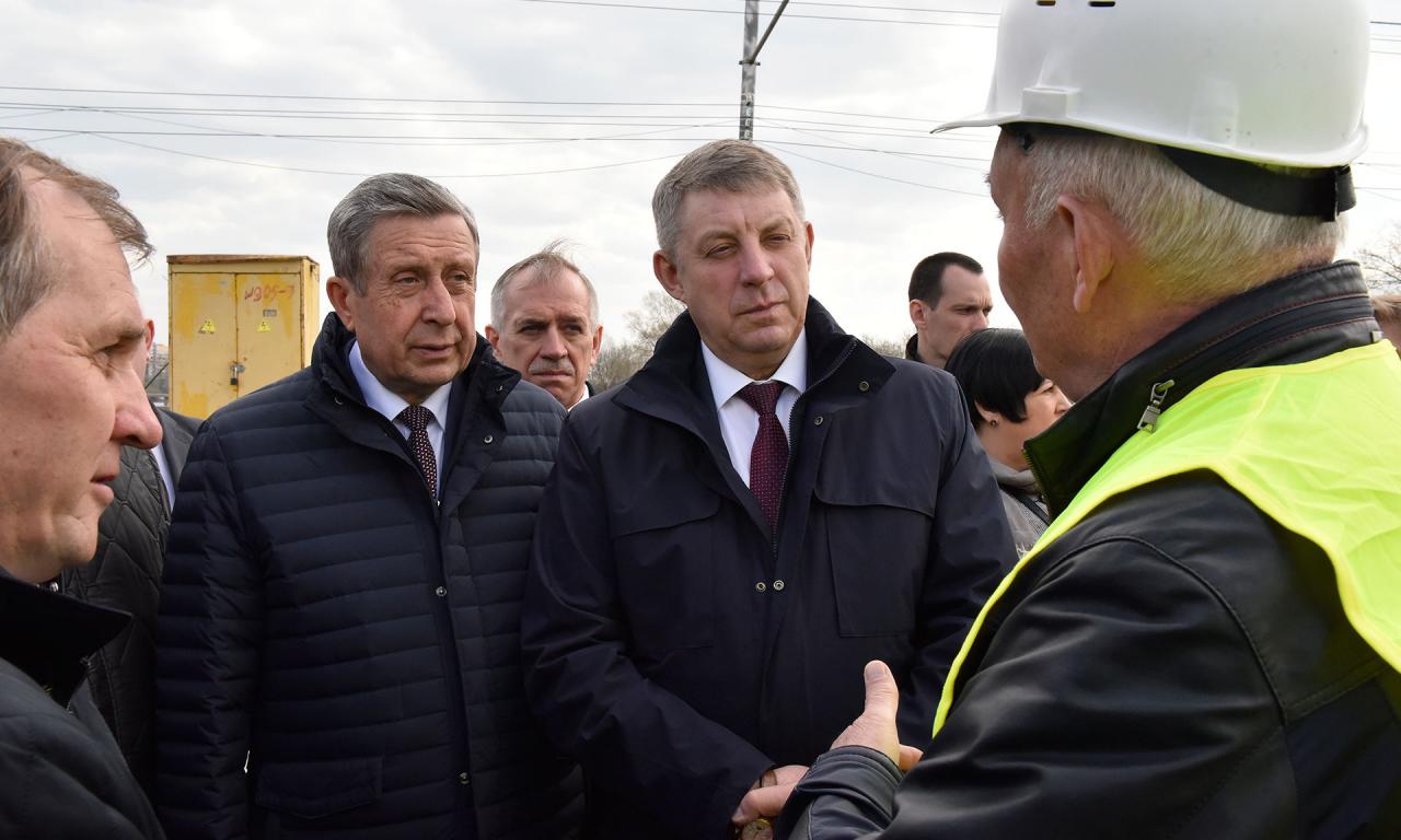 19 апреля Губернатор Брянской области Александр Богомаз и председатель Брянской областной Думы Владимир Попков оценили ход работ по реконструкции Первомайского моста через реку Десну в Бежицком районе Брянска.