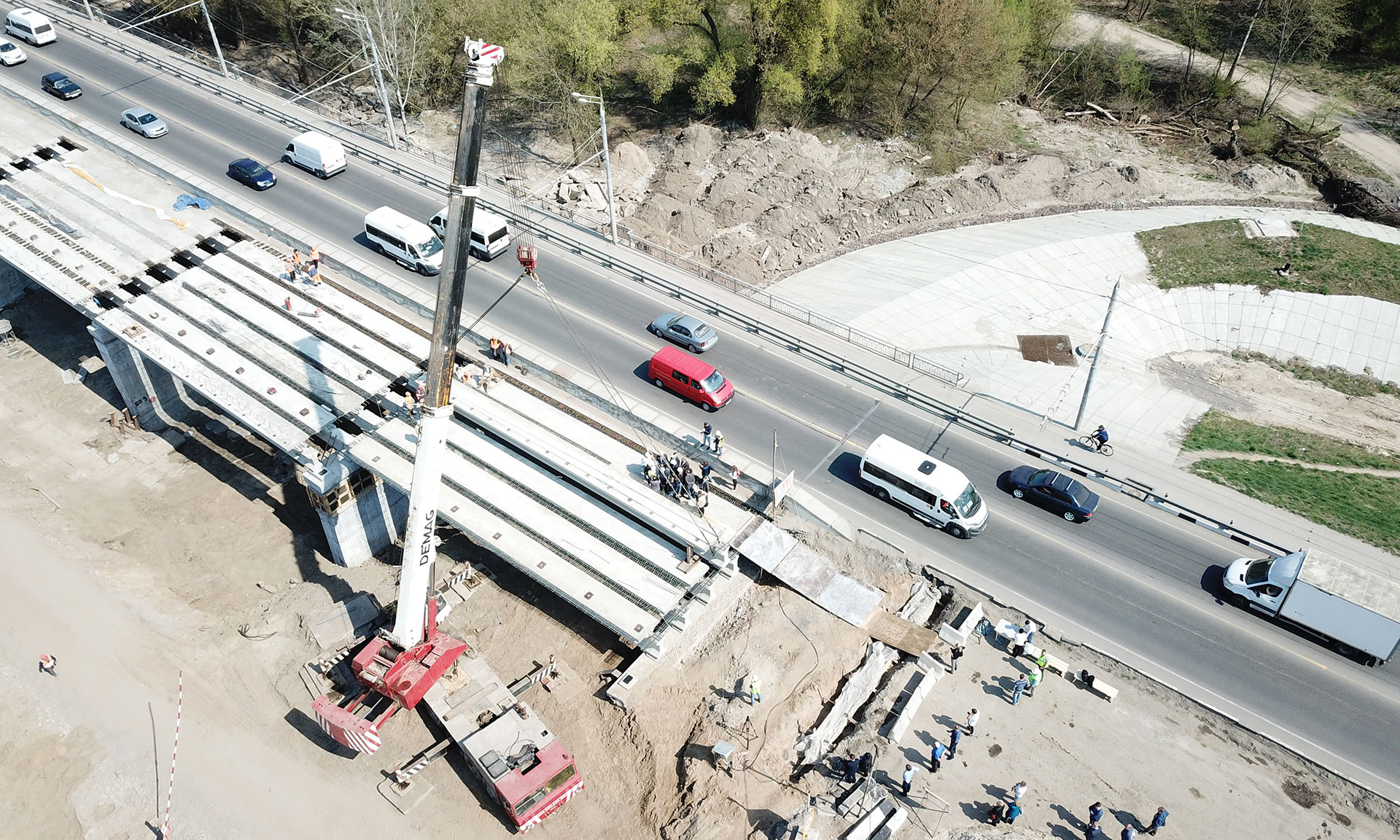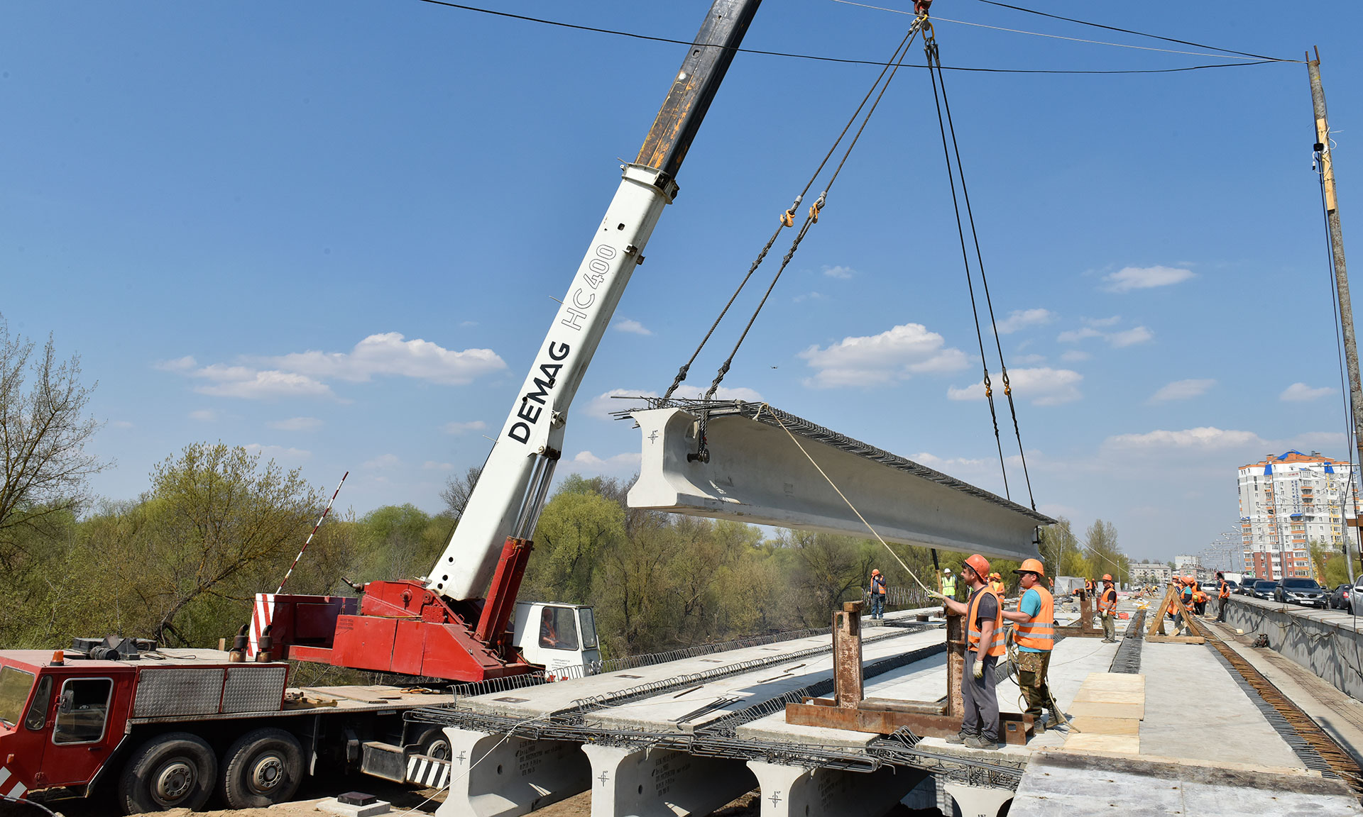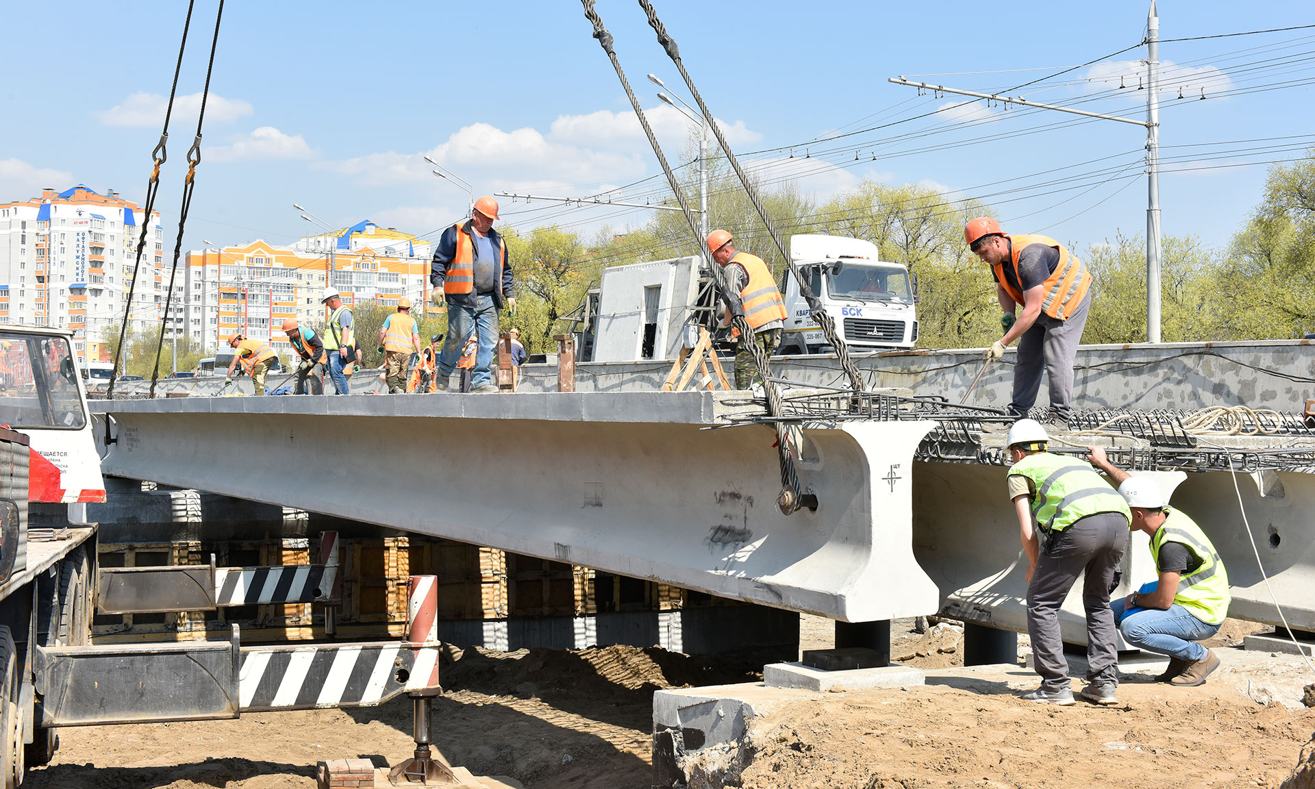 25 апреля в Брянске на Первомайском мосту строители приступили к завершающему этапу — укладке последнего пролета. За ходом работ на важнейшем объекте, соединяющем два крупнейших района Брянска — Бежицкий и Советский, — наблюдал лично Губернатор Александр Богомаз.
