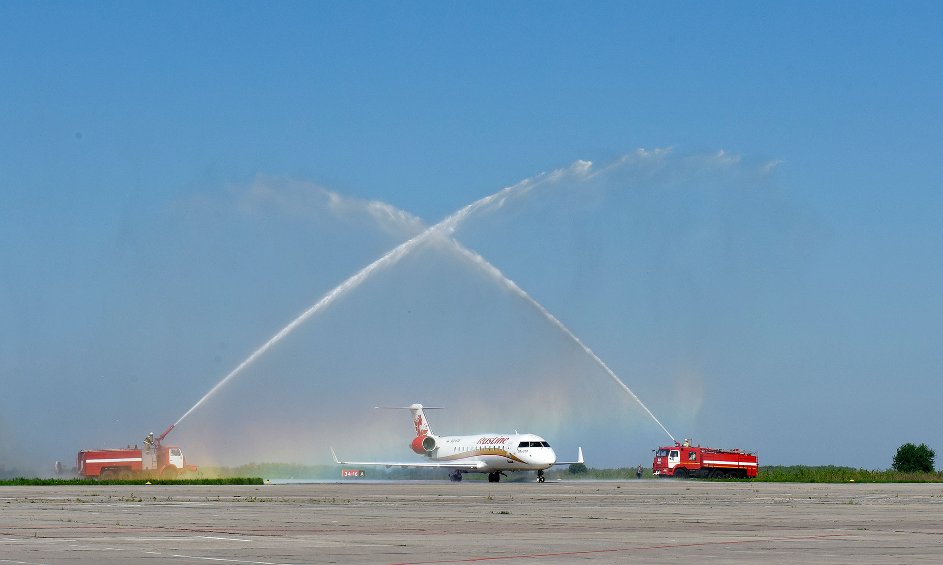 С мая «РусЛайн» открывает в Брянске три направления: Москва (четыре раза в неделю), Анапа (два раза в неделю) и Симферополь (два раза в неделю). 13 мая был совершен первый авиарейс по маршруту Москва (Внуково)-Брянск-Анапа. По сложившейся мировой традиции авиации первый борт встречали через водную арку, образованную двумя пожарными машинами. Первому пассажиру рейса Брянск-Анапа Григорию Альшицу вручили сертификат на уже бесплатный перелет в Анапу и обратно.