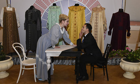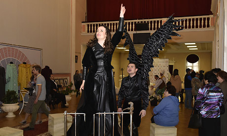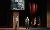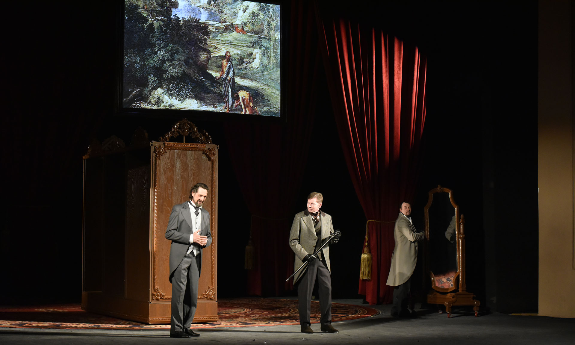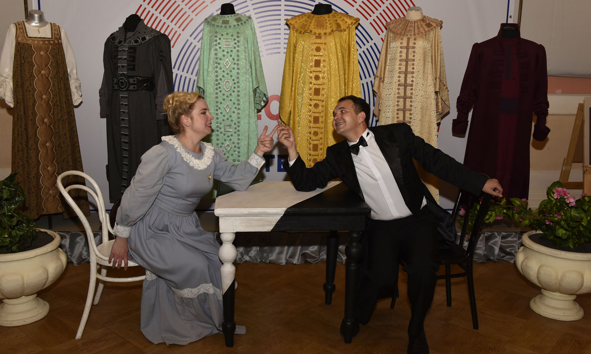 Губернатора Брянской области Александра Богомаза и почетных гостей встретили «театральные гиды», которые провели гостей по маршруту «променад-театра», коротко представляя различные жанры театра, а также актеры — участники театрального действа.