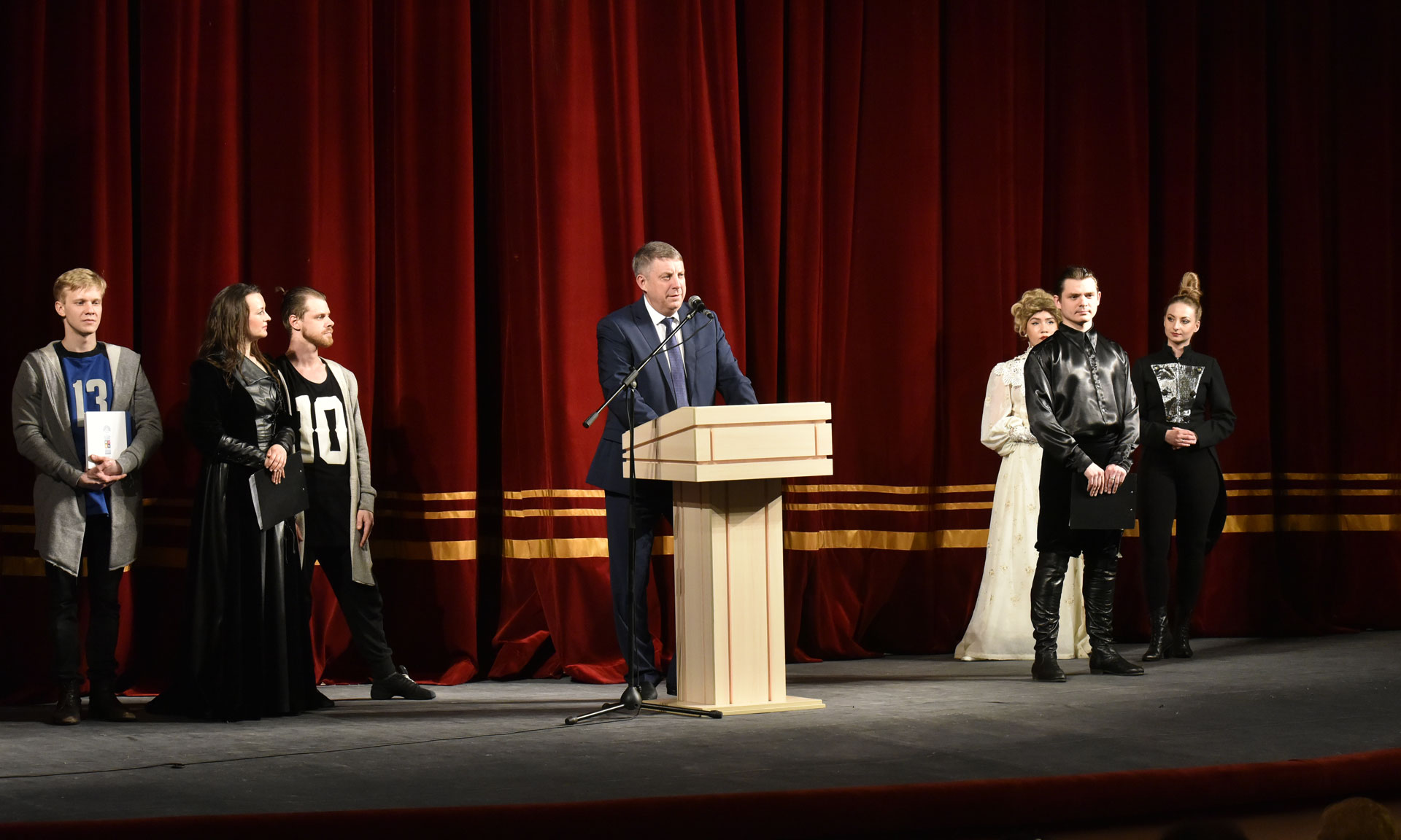 — Уважаемые гости, друзья. Сегодня большой праздник, потому что Президент нашей страны объявил 2019 год — Годом театра. На Брянской земле в очередной раз проходят театральные встречи. Культура и искусство — это основное в жизни каждого человека. Но важна и поддержка от власти и мы стараемся это делать — особенно поддержка театров, домов культуры. Сегодня к нам приехали коллективы из разных городов и стран, и это очень важно. Мы рады вам, и хочу особо поздравить вас от имени депутатского корпуса, пожелать актерам успехов и зрительских симпатий.