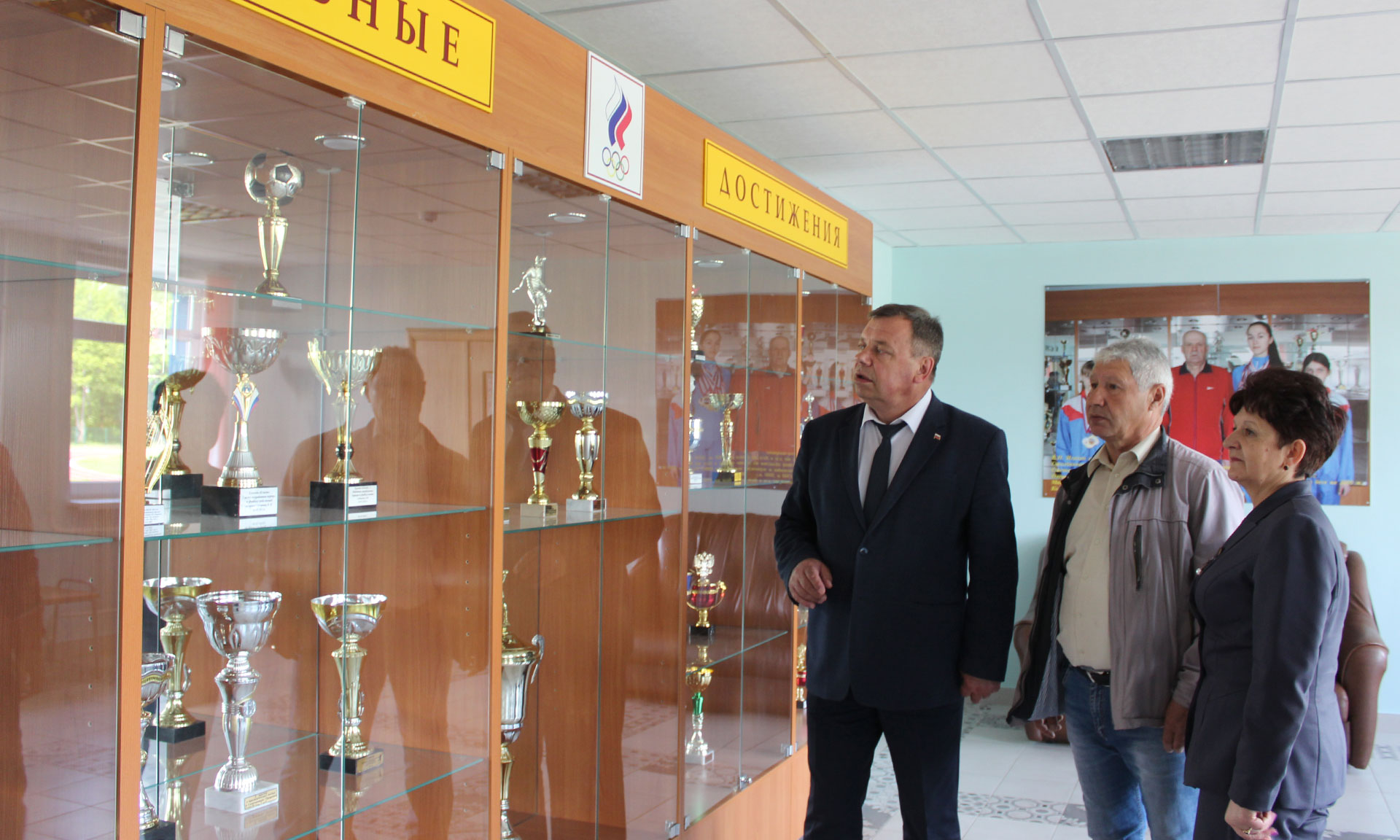 Следующим объектом рабочей поездки стал ФОК, построенный в Комаричах. Здесь к Владимиру Оборотову присоединились начальник управления физической культуры и спорта Брянской области Валерий Корнеев, специалист по ФК и спорту администрации Комаричского района Василий Бушин, директор Комаричской ДЮСШ Леонид Маркин.