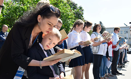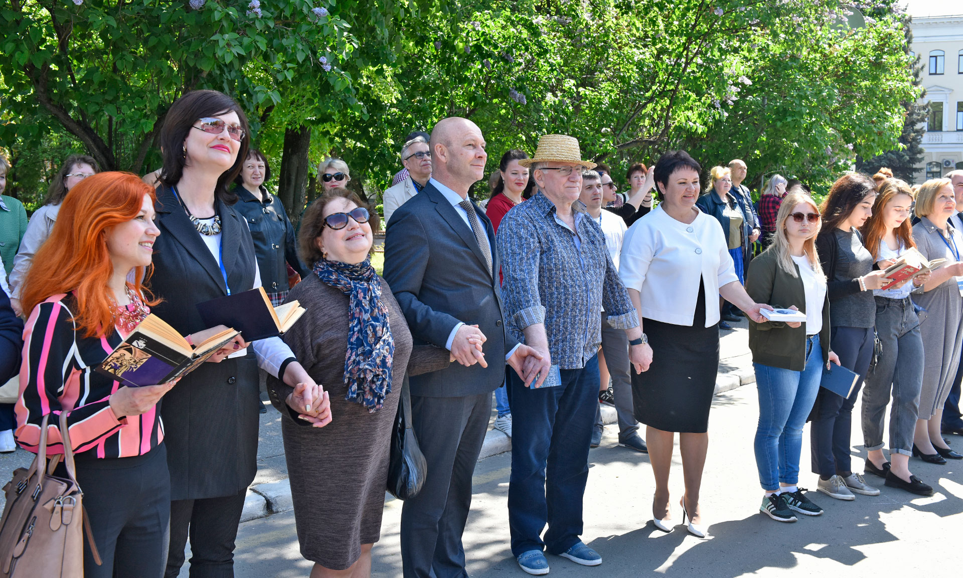 Вначале состоялся флеш-моб «Давайте читать вместе». Участники флэш-моба открыли книги и прочитали фрагменты из своих любимых произведений. Народный артист Российской Федерации, актер театра и кино Валерий Баринов прочел одно из своих любимых стихотворений Александра Блока.