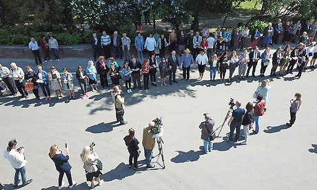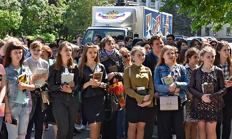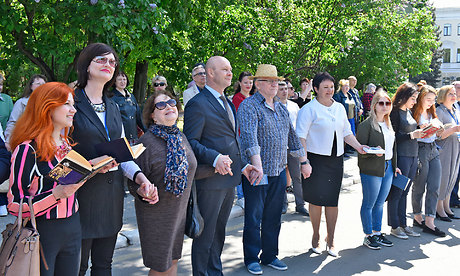 После чего собравшиеся перед входом в библиотеку исполнили Гимн библиотеки «Песня о книге».