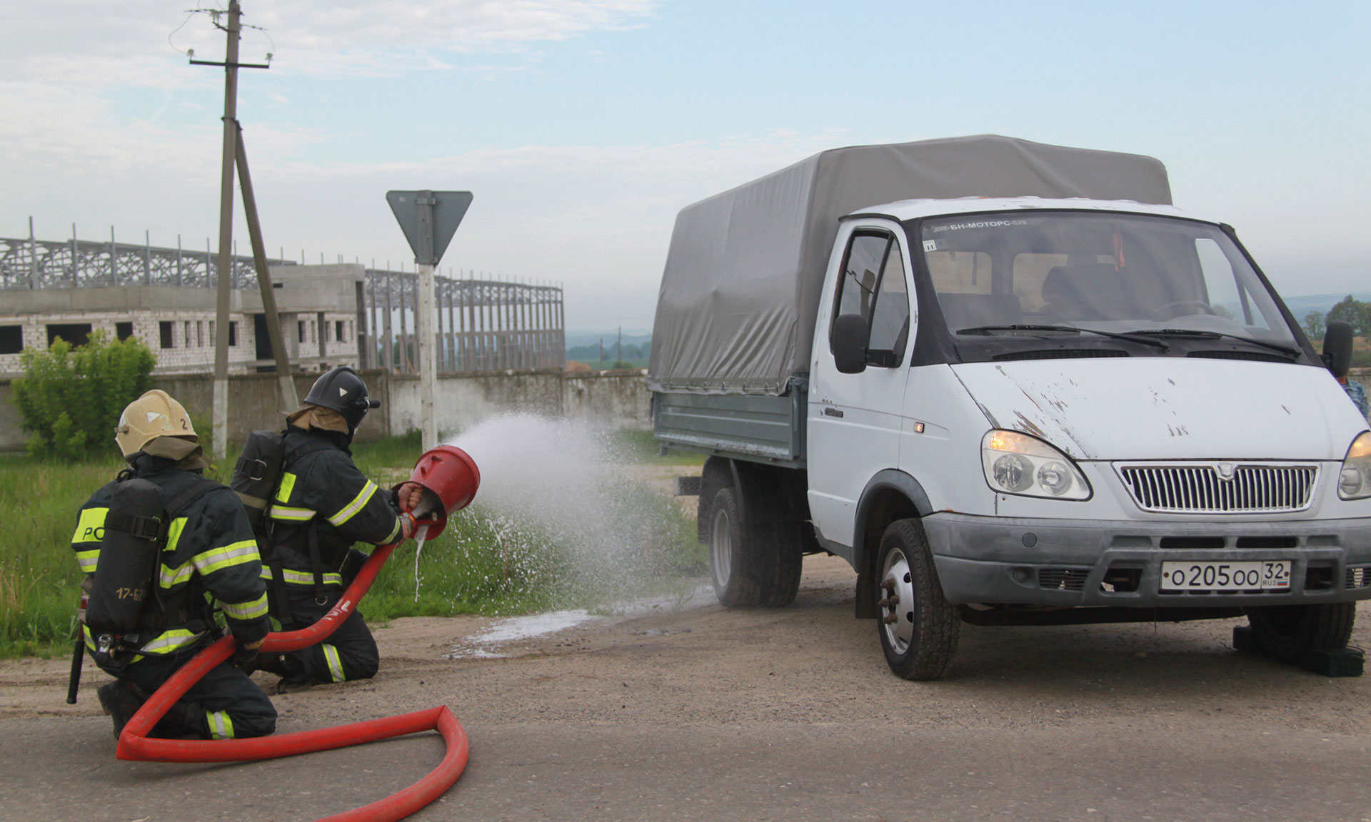 Согласно вводной учений, в результате ДТП на трассе Р-120 в районе поворота на д. Титовка Брянского района произошло столкновение грузового автомобиля с микроавтобусом. Произошло загорание автобуса, есть погибшие и пострадавшие. К месту незамедлительно прибыли пожарные и спасатели, сотрудники ГИБДД, центра медицины катастроф. Огнеборцы за считанные минуты ликвидировали пожар. Спасатели деблокировали условных «пострадавших» и передали их медицинским работникам, которые, в свою очередь, оказали пассажирам автобуса всю необходимую помощь.