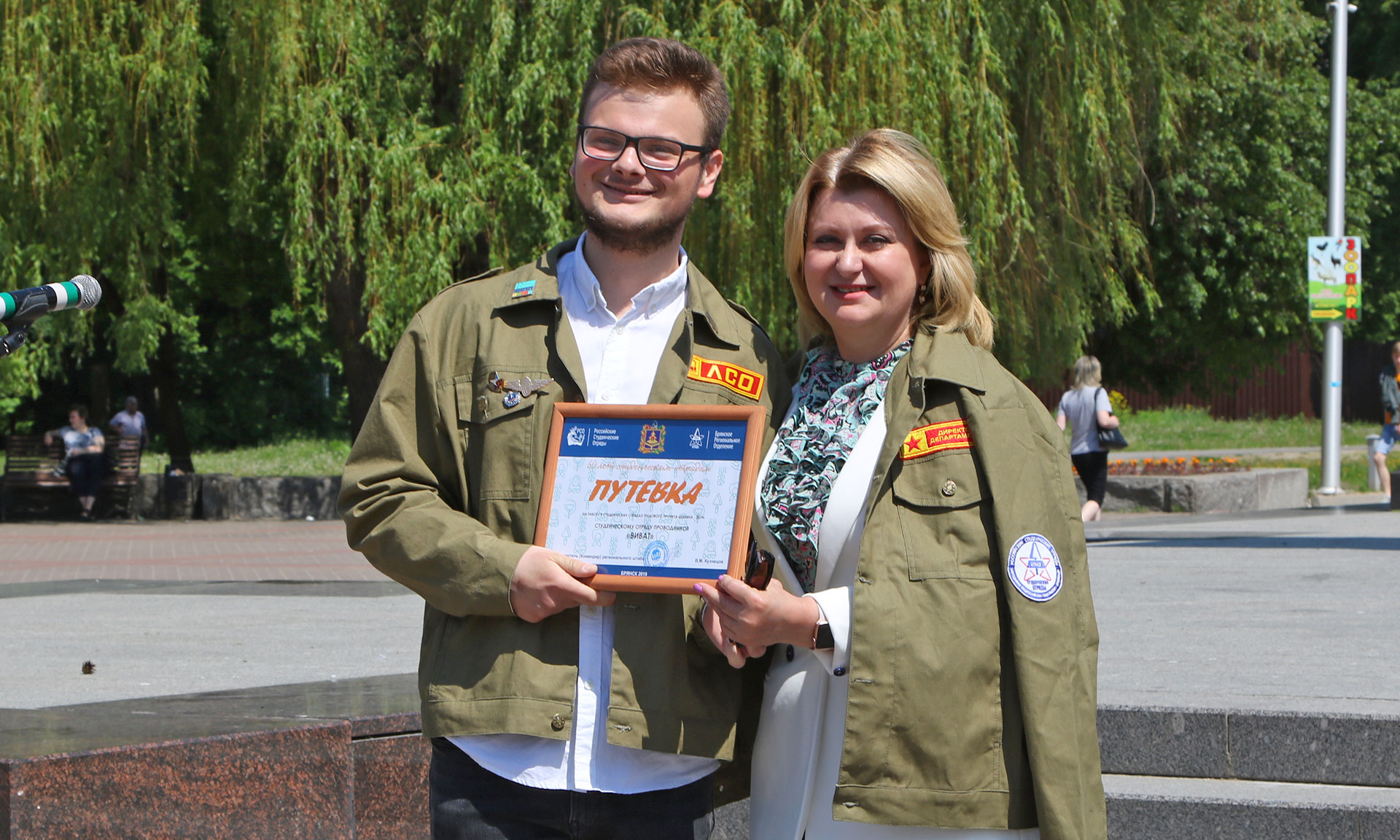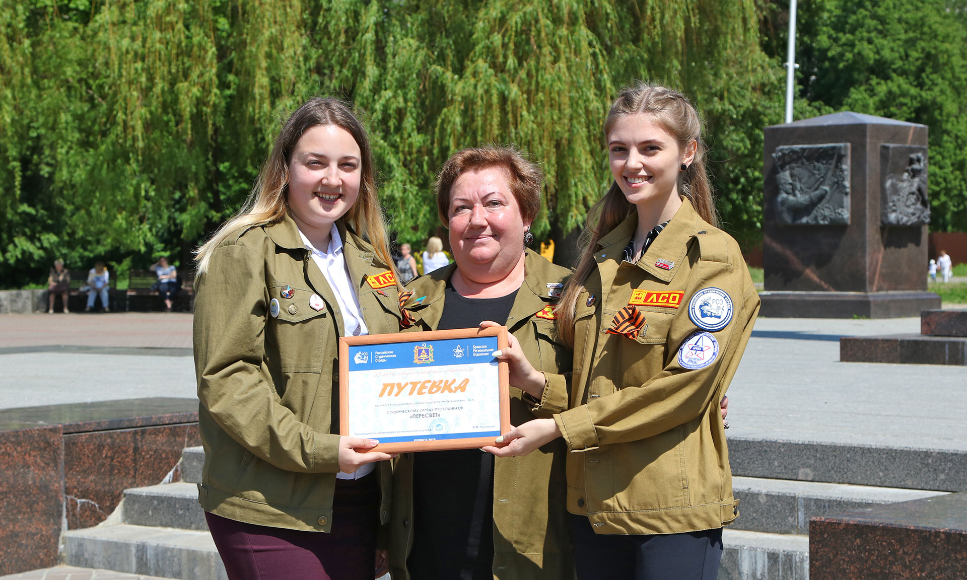 Гости вручили представителям студенческих отрядов путевки на участие в проекте «Целина-2019». Ребята в свою очередь передали им фирменные куртки-бойцовки со словами: «В бойцовке, значит, свой!» После коллективного фотографирования участники мероприятия высадили на территории Центрального парка культуры и отдыха имени 1000-летия города Брянска саженцы рябин.