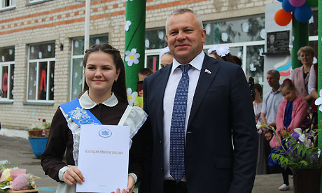 Дорогие выпускники! Во взрослой жизни вас непременно ждут новые открытия, значительные успехи и радость серьезных достижений. На пороге новой, взрослой жизни от всей души желаю вам никогда не утрачивать тяги к знаниям. Достигайте новых вершин, творите историю России и Брянщины, родного города, района и села. Помните, что в жизни ценятся честность, преданность, самоотверженность, желание свершать и творить во благо человека!
