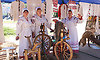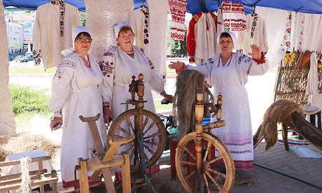 С интересом гости слушали, как поют женщины в народных костюмах из Федоровского поселения, слушали и смотрели, как они прядут лен, слушали рассказ о старинной технологии его производства.