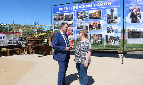 Открывая праздничное мероприятие, заместитель Губернатора Брянской области Сергей Сергеев отметил, что презентации проводятся для того, чтобы в юбилейный год образования Брянщины, жители области смогли узнать, как живут муниципальные районы, ознакомиться с их ролью в жизни Брянщины, призвал гостей обязательно посетить выставочные павильоны предприятий районов, развернувшиеся на Славянской площади.