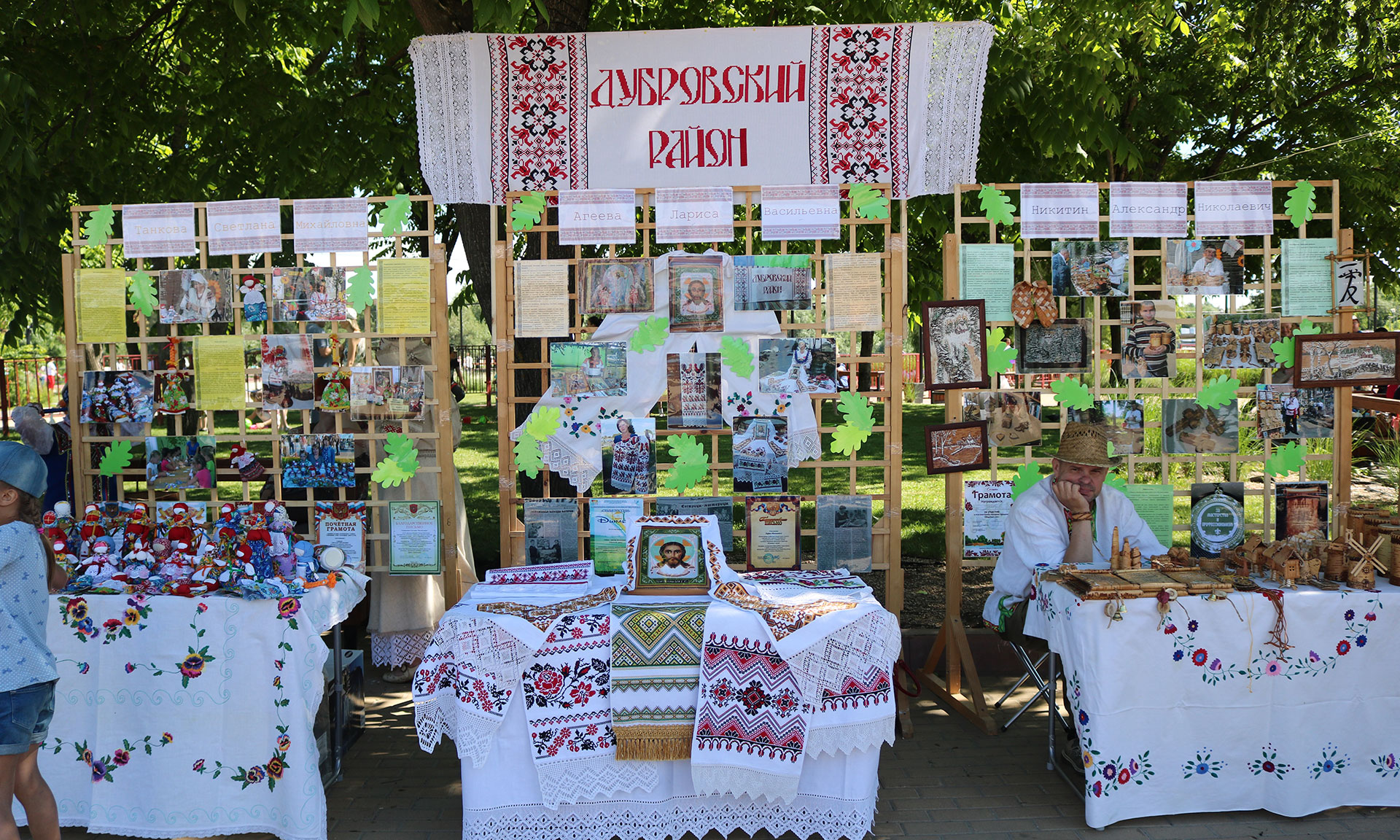 В районе проводится большая работа по приобщению детей к народным традициям в школах и организациях дошкольного воспитания. Красочные выставки, где можно увидеть и шитье бисером, замечательные игрушки, выполненные из различных материалов, привлекли множество зрителей. Это свои и детские работы представили Наталья Рыжко, Евгения Рарыкина, Александр Голанов. Радовало посетителей и выставка работ ЦРТДиЮ.