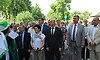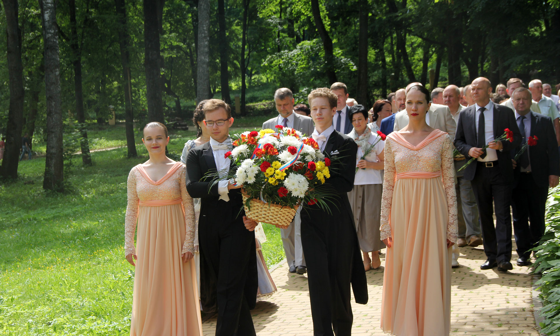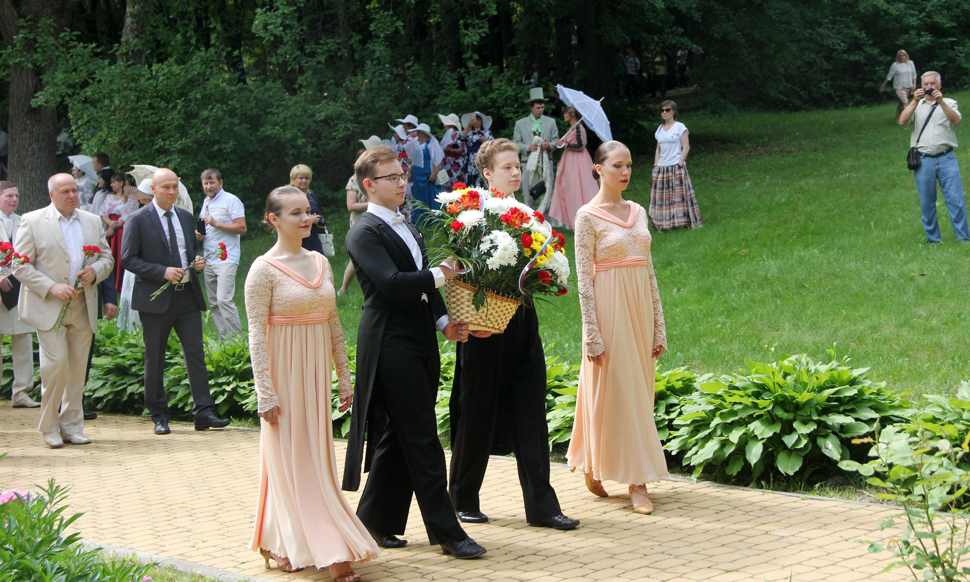У ворот музея-заповедника официальную делегацию встречали актеры в образах семьи Тютчевых. Торжественным моментом стало возложение цветов к памятнику Ф. И. Тютчеву.