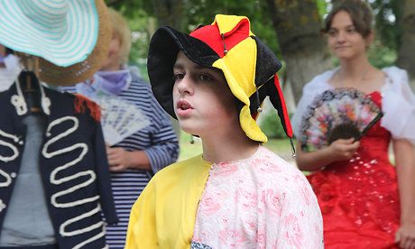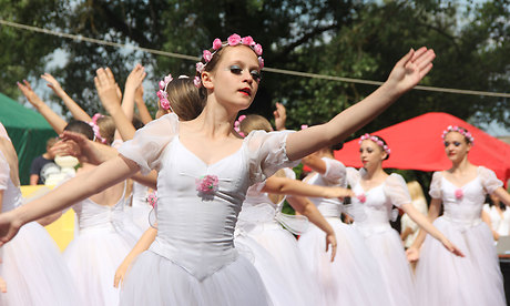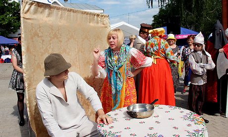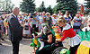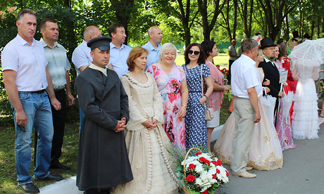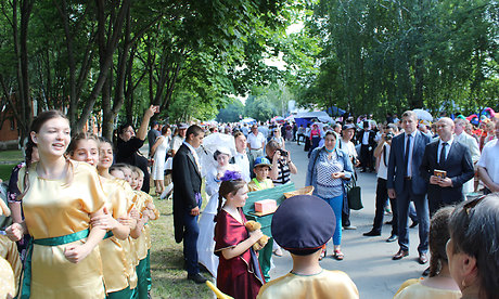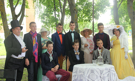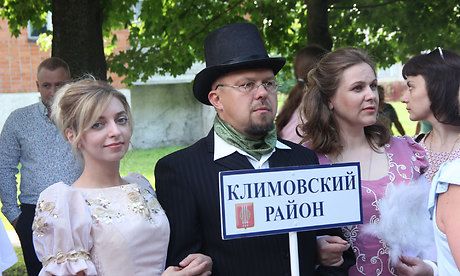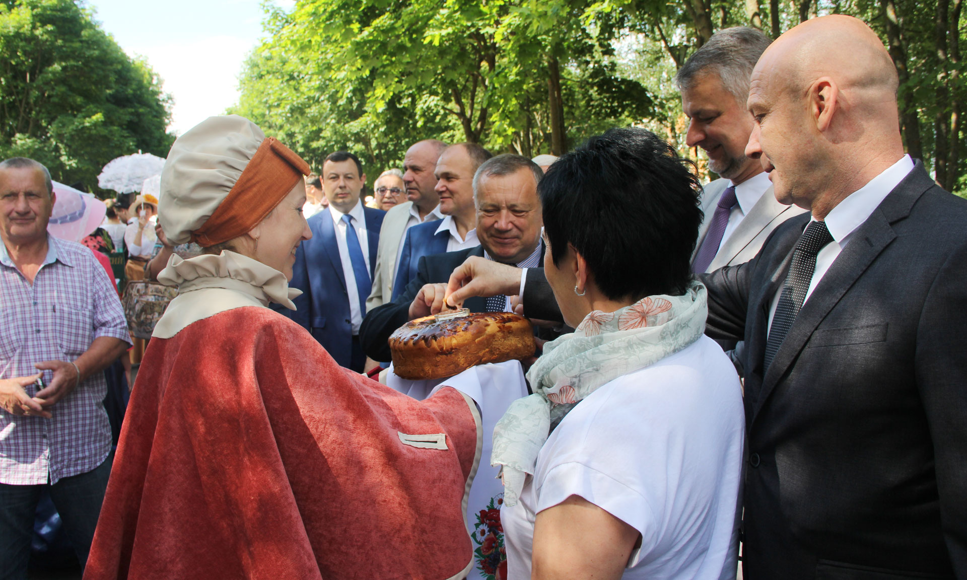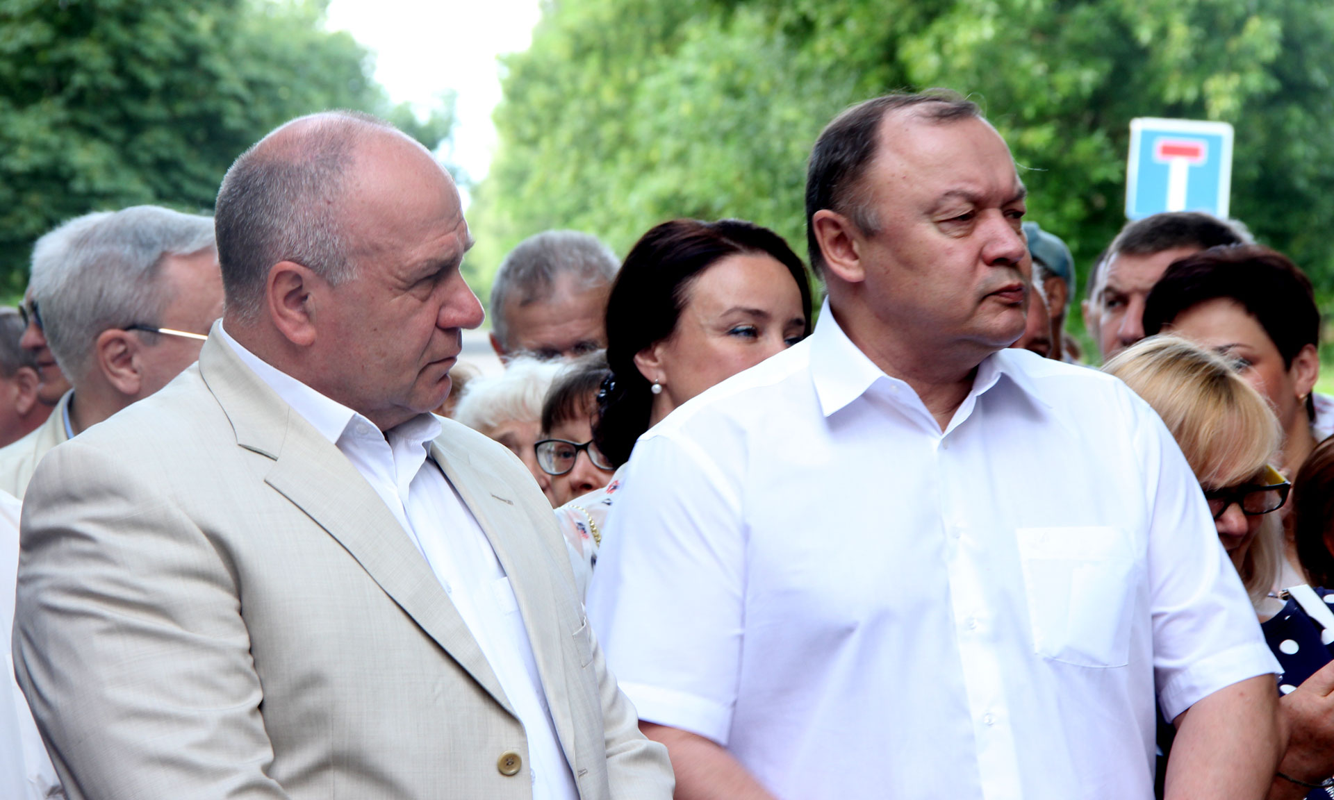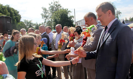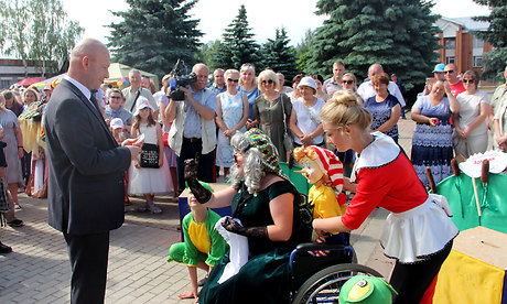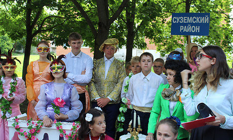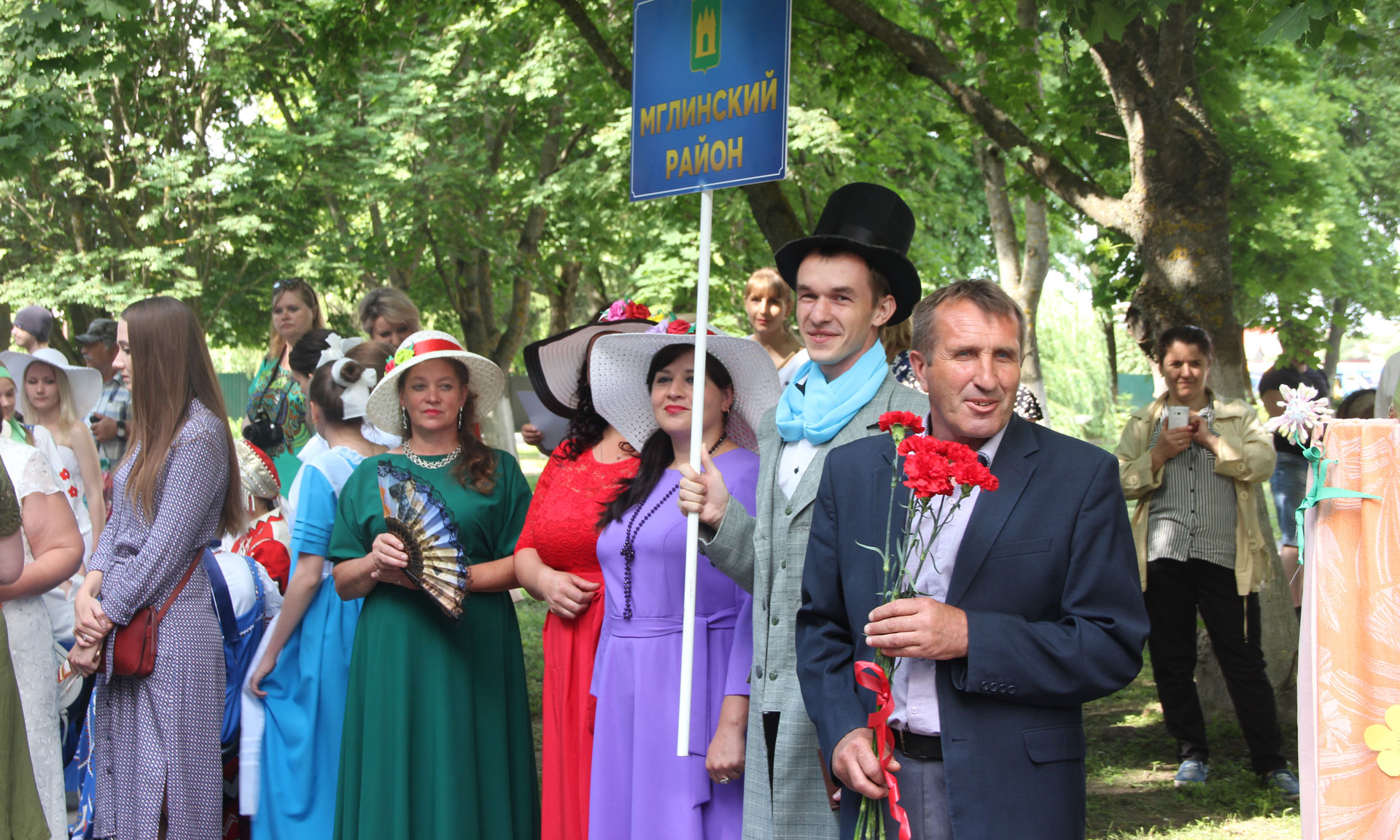 На центральной улице Овстуга делегацию почетных гостей во главе с заместителем Губернатора Брянской области Александром Коробко встречали театральные коллективы — победители и участники театральных фестивалей, проводимых в Брянской области в Год театра.