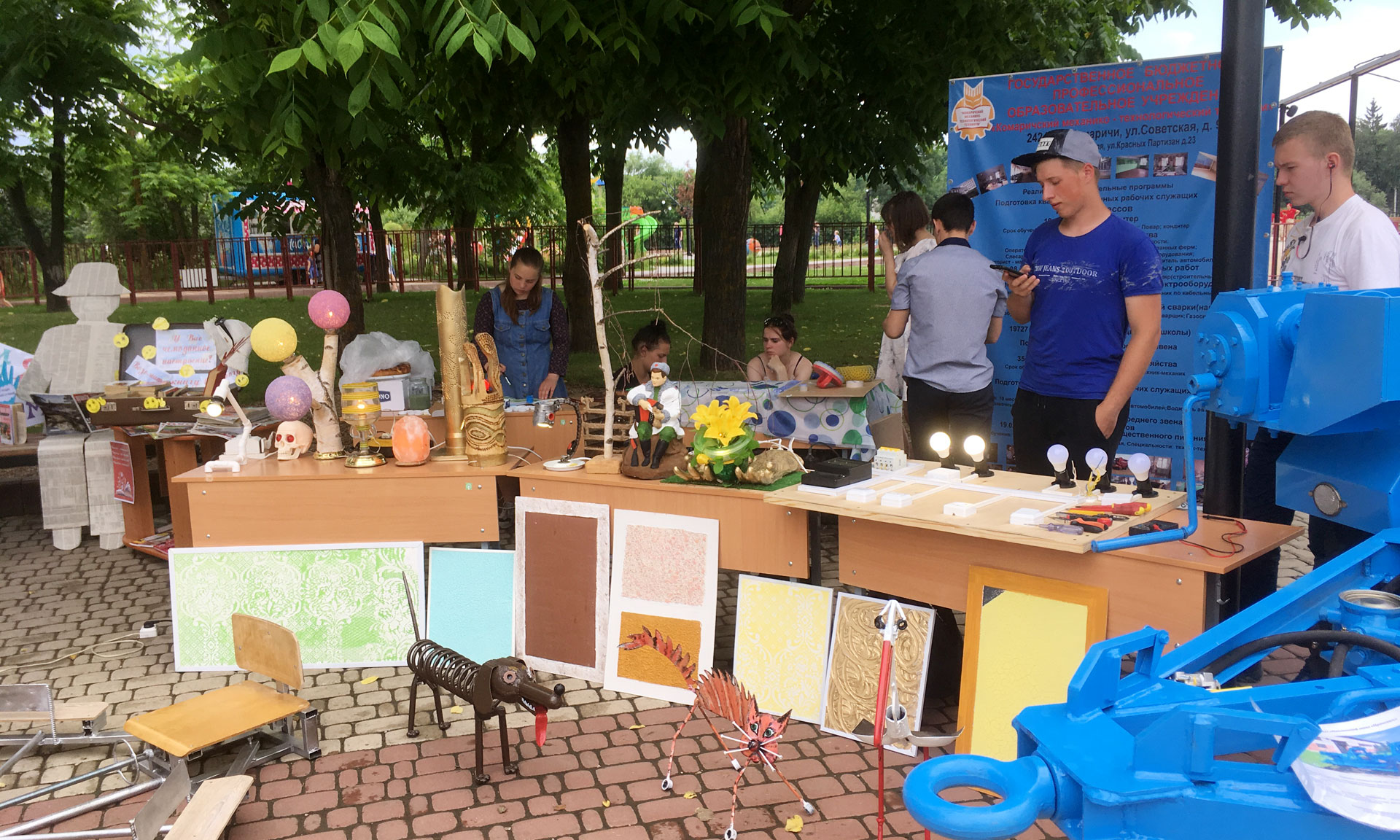 Большой интерес у зрителей вызвала площадка народных умельцев и мастериц. Свои работы представили: Ирина Джимшелеишвили, Рита Кочетова, Ирина Казакова, Екатерина Набоко, Елена Прудникова, Галина Шумакова, Наталья Агибалова, Тамара Задорина и другие. Они демонстрировали уникальные творческие умения, выполненные в разнообразных техниках. Были представлены разнообразные изделия из бумаги, вязанные крючком вещи и игрушки, картины (вышитые и нарисованные), куклы-обереги, кондитерское творчество с символикой Навлинского района и многое другое. Все это по достоинству оценили жители и гости Брянска.