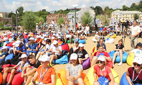 А пока герои принимали участие в мастер-классах и состязаниях, самые маленькие жители Брянска облюбовали освежающий фонтан, который является одним из ярких украшений вновь обустроенной набережной Брянска.