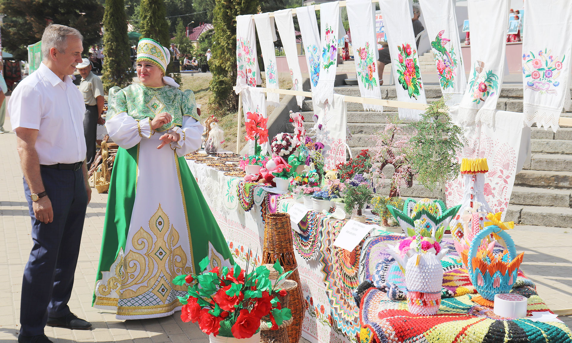 А на набережной красавицы Десны шла бойкая торговля. Лучшие предприятия района, сельхозпроизводители продавали все, чем богат район: Погарская картофельная фабрика, известная не только в России, но за рубежом — качественные картофельные хлопья, консервный завод «Агриппина» — разносолы к праздничному и повседневному столу, компания «Авангард»- экипировку для труда и активного отдыха. Были на прилавках погарские огурцы, клубника и майский мед.