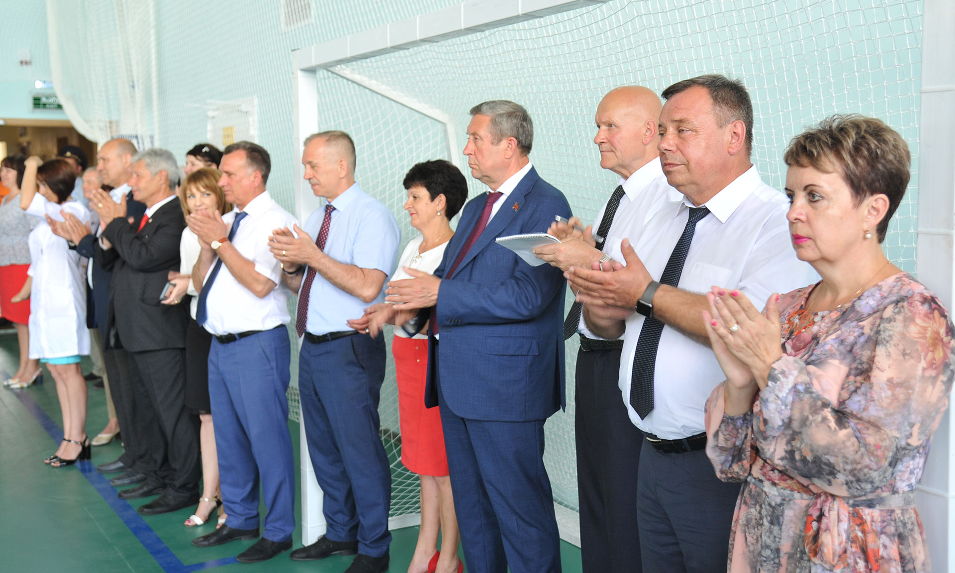 Почётное право открыть физкультурно-оздоровительный комплекс предоставлено председателю Брянской областной Думы Владимиру Попкову, заместителям Губернатора Владимиру Оборотову и Юрию Мокренко, а также юным спортсменам: Маргарите Олешко призёру Первенства ЦФО по легкой атлетике в беге на 1500 м; Даниилу Барауле победителю Кубка Содружества и серебряному призёру ЦФО по тайскому боксу.