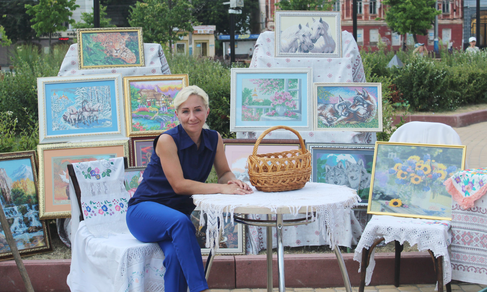Работали на подворье и мастера прикладного искусства. Так, выставки своих работ предоставили Наталья Киселева из Карпиловки, Елена Казакова из Злынки, Валентина Луценко из р.п. Вышкова. Кстати, Валентина Луценко подарила официальным гостям подворья своих кукол-берегинь, данный подарок является пожеланием уюта, добра, радости, счастья и благополучия в доме. Деревянную мебель, трон, на котором все фотографировались, предоставил мастер по дереву из села Добродеевка Злынковского района Василий Филиппенко. Хороший концерт был также подготовлен нашими артистами. Так, на импровизированной сцене у Брянской областной филармонии в это время выступали работники культуры Злынковского района, самодеятельные артисты. Они подарили свои концертные номера зрителям и посвятили их родному краю и любимой Брянщине.