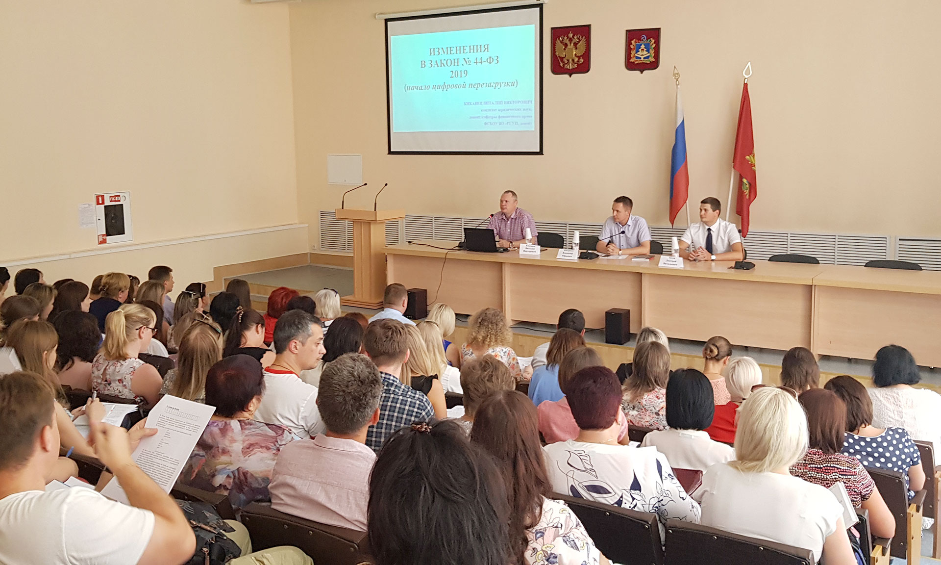 В ходе семинара до собравшихся была доведена информация об изменениях в федеральном законе от 5 апреля 2013 года № 44-ФЗ «О контрактной системе в сфере закупок товаров, работ, услуг для обеспечения государственных и муниципальных нужд» (далее — № 44 ФЗ), вступающих в силу с 1.07.2019, 31.07.2019, 1.10.2019 и 1.04.2020 гг.