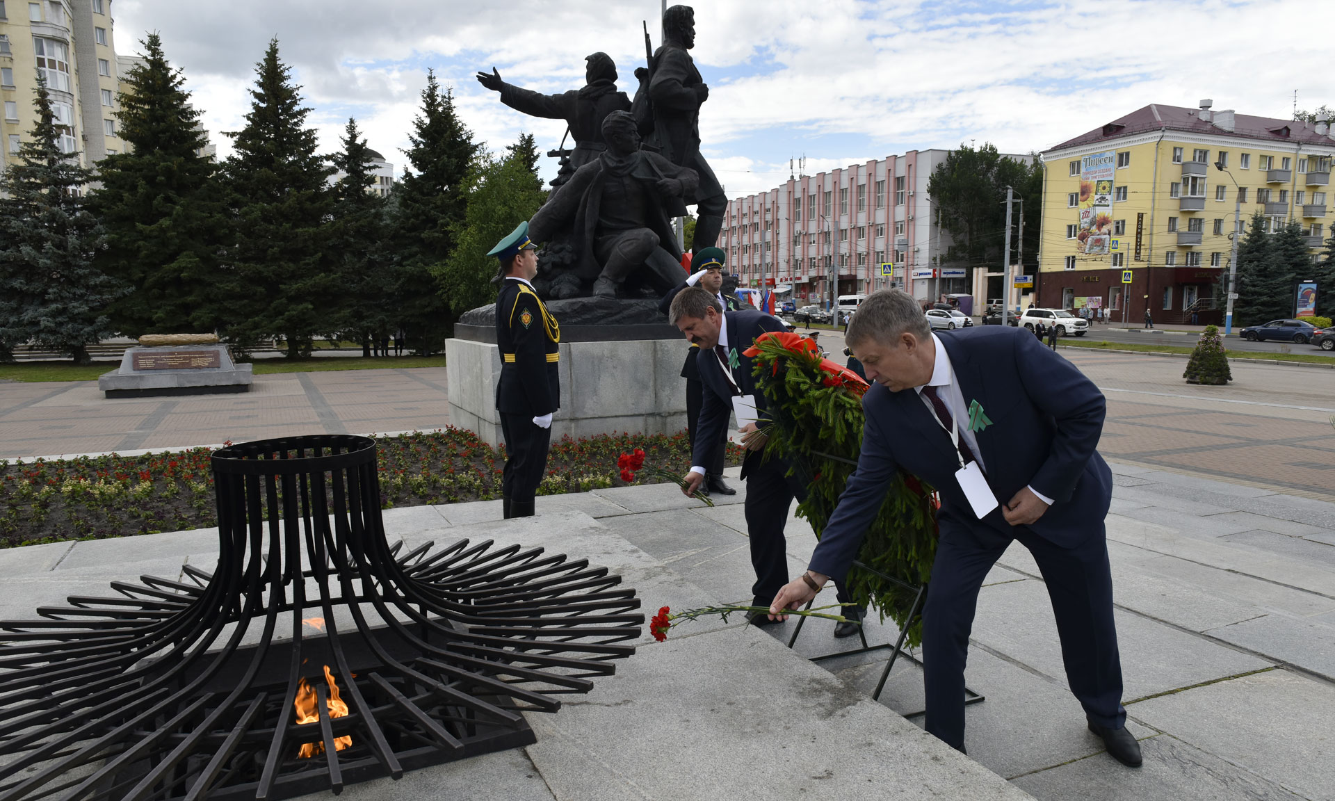 В ритуале возложения цветов и венков к Вечному огню приняли участие Губернатор Брянской области Александр Богомаз, председатель Брянской областной Думы Владимир Попков, главный федеральный инспектор по Брянской области Андрей Дьячук, Герой Советского Союза Иван Кашин, депутаты Государственной Думы Федерального Собрания Российской Федерации Валентина Миронова и Валентин Суббот, председатель Брянского областного суда Евгений Быков, председатель Арбитражного суда Брянской области Евгений Егоров, начальник управления ФСБ России по Брянской области Николай Рудь, начальник управления МВД России по Брянской области Владислав Толкунов, начальник главного управления МЧС России по Брянской области Вадим Уваркин, заместитель начальника правления Федеральной службы войск национальной гвардии Российской Федерации по Брянской области Сергей Сердюк, первый заместитель руководителя следственного управления Следственного комитета Российской Федерации по Брянской области Дмитрий Буравцов, начальник пограничного управления ФСБ России по Брянской области Сергей Митюшин, руководитель управления Федеральной службы судебных приставов по Брянской области — главный судебный пристав Брянской области Елена Бывшева, начальник управления ФСИН России по Брянской области Леонид Сагалаков, заместитель начальника Брянской таможни Мирослав Мильченко, руководитель управления ФНС России по Брянской области Андрей Маркелов, заместители Губернатора Брянской области, руководители города Брянска, депутаты Брянской областной Думы, руководитель Брянского регионального отделения ООО «Ветераны боевых действий России» Вячеслав Губанов, председатель Брянской областной общественной организации Российского союза ветеранов Виктор Андреев, председатель Брянского регионального общественного движения военно-патриотических и поисковых организаций «Отечество», организатор шествия Общероссийского общественного гражданско-патриотического движения «Бессмертный полк» Александр Соболев, командир в/ч 55443-БМ Игорь Дубинкин, руководитель исполнительного комитета регионального отделения Общероссийского общественного движения «Народный фронт «За Россию» в Брянской области Лариса Третьякова, сопредседатель регионального штаба регионального отделения Общероссийского общественного движения «Народный фронт «За Россию» в Брянской области Валерий Родоманов, член правления РОО «Брянское землячество» Александр Борода, член РОО «Брянское землячество в г. Москва» Игорь Демиденко, секретарь Брянской Епархии о. Павел (Чикалин).