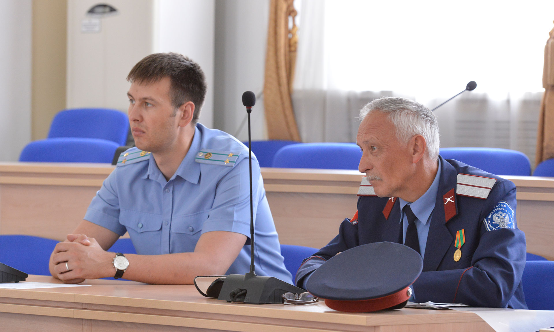 Об использовании альтернативной формы взаимодействия представителей казачьих обществ с органами внутренних дел в охране правопорядка в соответствии с федеральным и региональным законодательством, регламентирующим вопросы участия граждан в охране общественного порядка доложил начальник управления организации охраны общественного порядка и взаимодействия с органами исполнительной власти субъектов Российской Федерации и органами местного самоуправления УМВД России по Брянской области Сергей Хлестков.