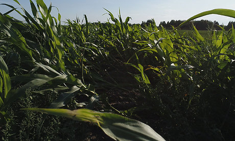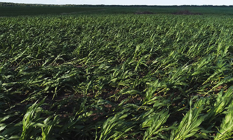 На другом участке, где не применяли безводный аммиак, аграрии смогли увидеть полегшие посевы кукурузы и убедиться в наличии насекомых-вредителей.