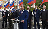 — Уважаемые друзья, сегодня знаковое и очень красивое событие — в день образования Брянской области открывается такой красивый мост. Сейчас, когда мы шли с Губернатором, вспоминали, что совсем недавно ехали и считали, сколько километров плохой дороги осталось. А сейчас мы находимся у очень красивого моста. И это символично, потому что совсем недавно здесь были пробки. А сейчас, как только будет дана команда о пуске моста, пробок уже не будет! У региона, где строят дороги, мосты, школы, социальные учреждения, есть прошлое, настоящее и великое будущее! С праздником вас, дорогие друзья!