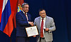 Весь зал почтил память погибших моряков-подводников, уроженцев Брянской области, капитана II ранга ВМФ России Дмитрия Александровича Соловьева и капитана I ранга ВМФ России Сергея Петровича Данильченко. Сегодня, 5 июля, Президент России Владимир Путин подписал Указ о присвоении Дмитрию Соловьеву звания Герой России и о награждении Орденом Мужества Сергея Данильченко, посмертно. Наши земляки навсегда останутся в памяти, как истинные патриоты своей Родины, Герои своего Отечества.