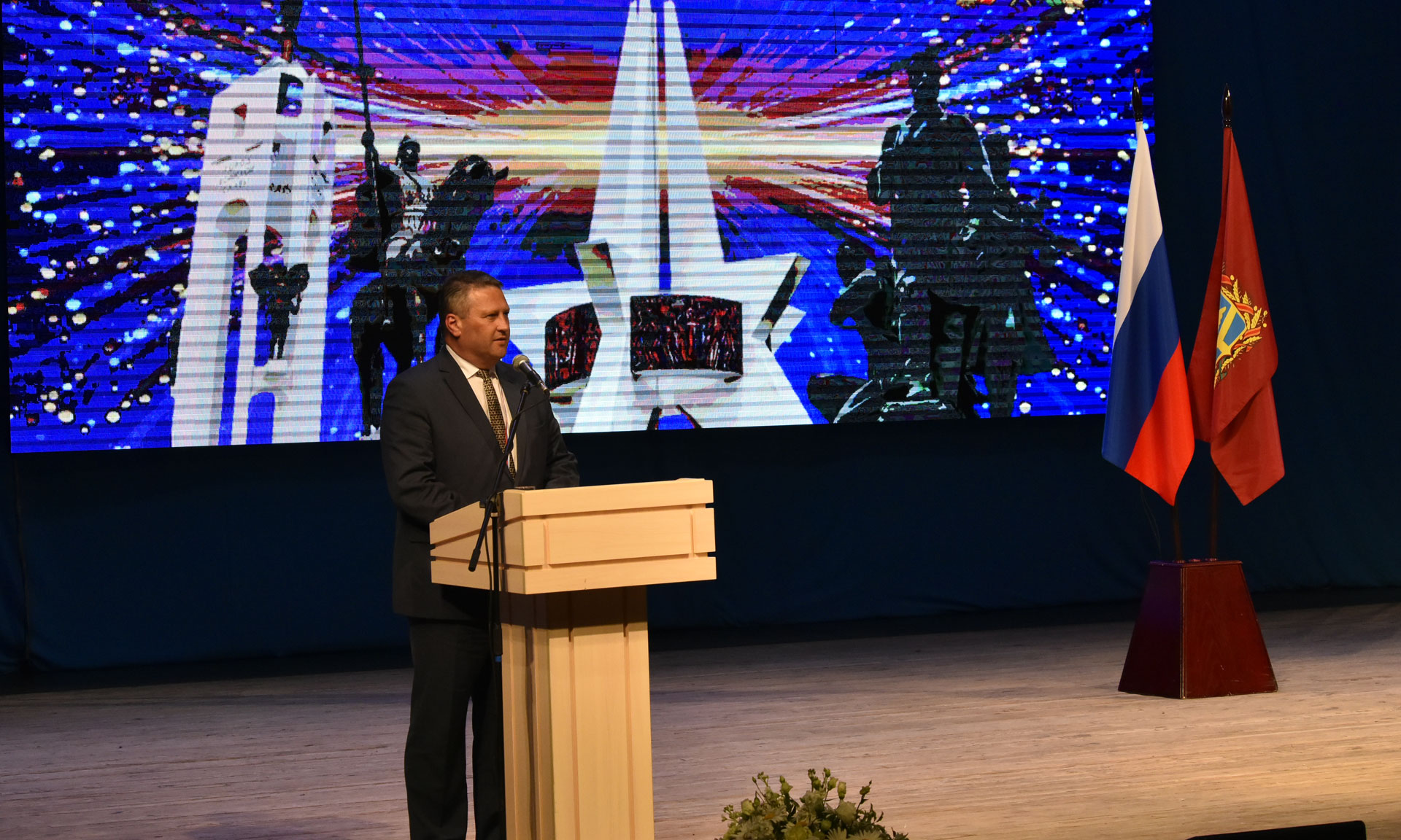 — Уважаемый Александр Васильевич! Уважаемый Владимир Иванович! Дорогие жители Брянщины и уважаемые гости! Сердечно поздравляю вас со знаменательной датой — 75-летием со дня образования Брянской области!