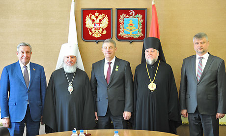 За значительный вклад в возрождение православных традиций и просветительскую деятельность в Брянской области вице-губернатор Александр Резунов наградил Почетной грамотой митрополита Брянского и Севского Александра. За особый вклад в строительство, возрождение православных храмов и сохранение культурно-духовного наследия Брянской области вице-губернатор Александр Резунов наградил Почетной грамотой епископа Клинцовского и Трубчевского Владимира.