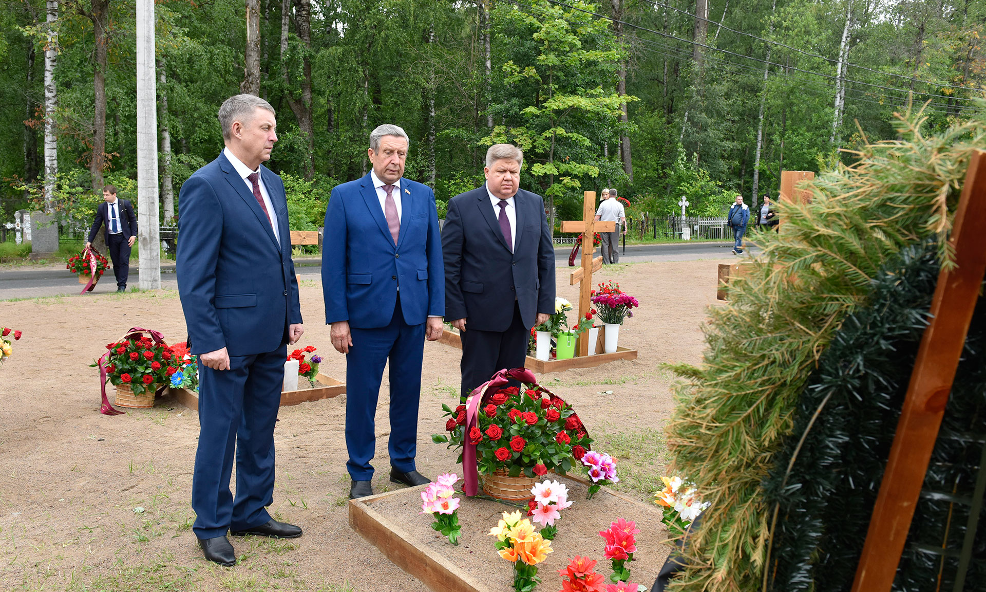 17 июля Губернатор Брянской области Александр Богомаз, председатель Брянской областной Думы Владимир Попков, заместитель Губернатора Геннадий Лемешов возложили цветы к могилам погибших членов команды научно-исследовательского глубоководного аппарата на Серафимовском кладбище Санкт-Петербурга.