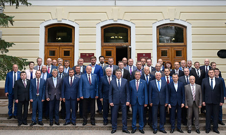 В завершение заседания Думы народные избранники собрались на общее фотографирование на память, ведь уже в сентябре, после проведения выборов, состав регионального парламента изменится.