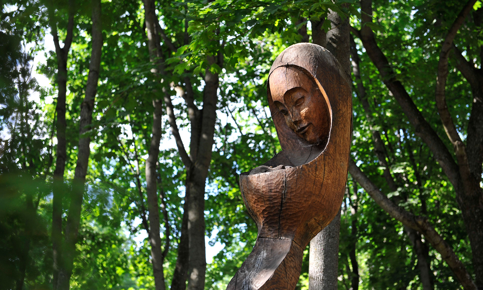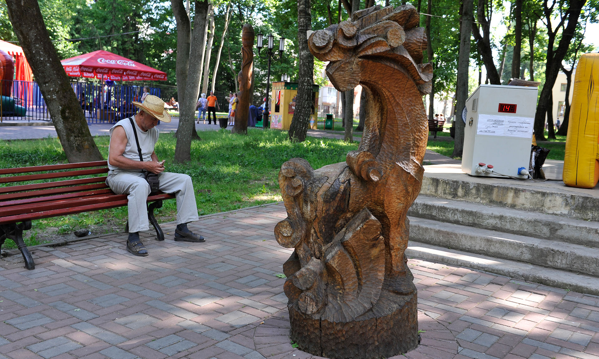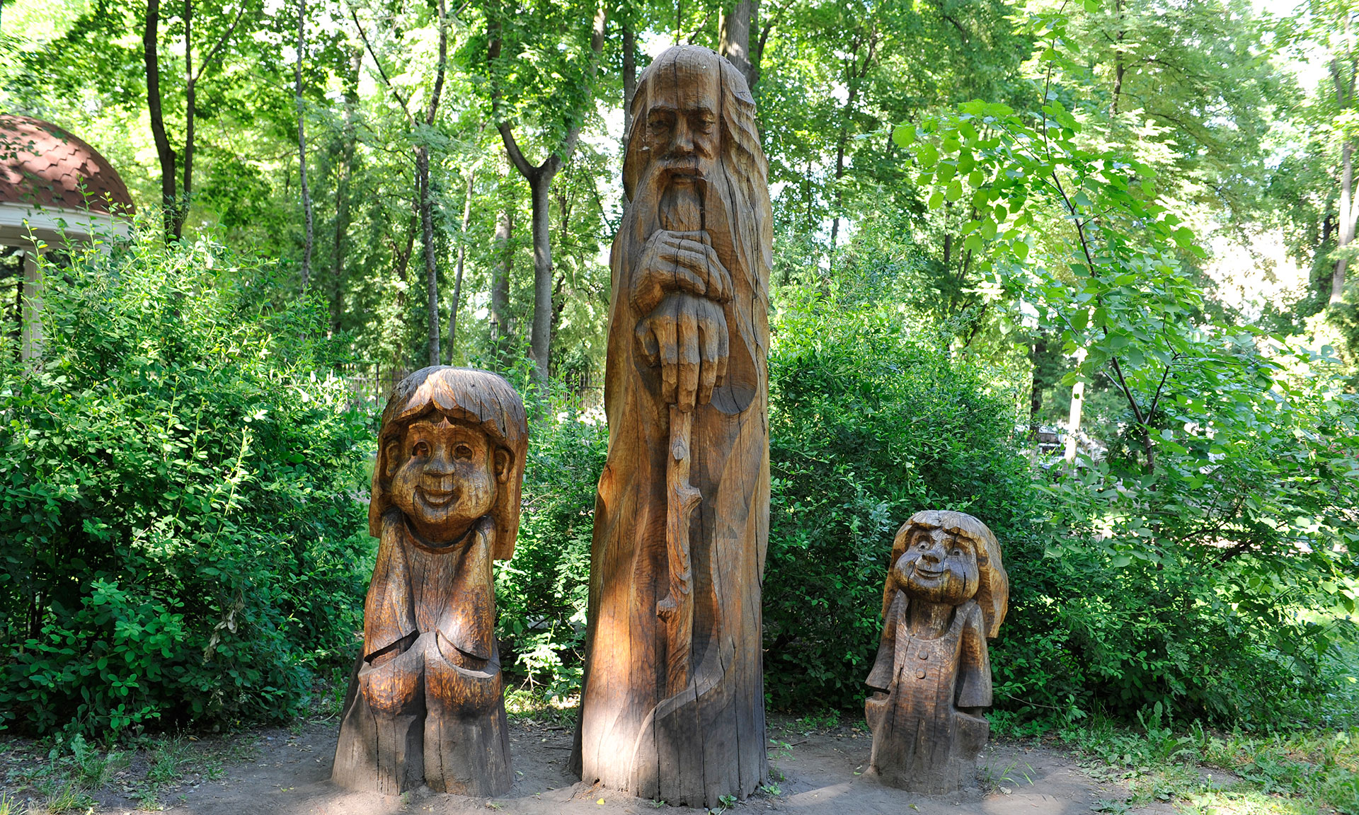 Старейший брянский парк был основан в 1936 году, а первая деревянная скульптура появилась здесь в 1960 году по инициативе его директора, поэта и фронтовика В. Д. Динабургского. Именно ему удалось изменить облик парка, вдохновив мастеров на создание оригинальной коллекции деревянных скульптур. Самобытный декоративно-парковый ансамбль снискал любовь горожан и широкую популярность не только в нашей стране, но и за рубежом.