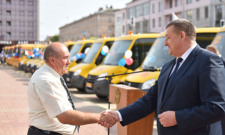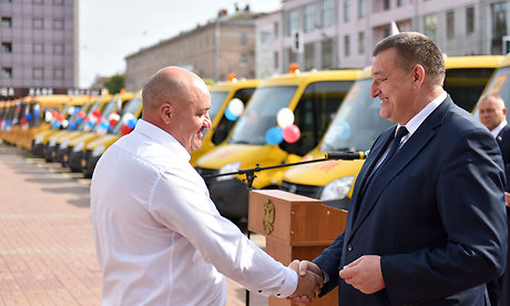— Добрый день, уважаемые участники мероприятия. Такие события стали традиционными, уже на протяжении трех лет мы вручаем ту или иную технику для различных наших муниципальных предприятий, транспортных предприятий, системы здравоохранения, образования. Это и автобусы для наших жителей и области, и города, и машины скорых помощей, и сегодня мы проводим еще одно мероприятие по вручению школьных автобусов для наших муниципальных образовательных учреждений Брянской области. Очень правильно и важно, что за эти три года мы с этими сегодняшними 24 автобусов поставили в наши школьные учреждения 145 автобусов. И конечно же, радует, что из 145 автобусов только 43 приобретены за федеральные средства, а все остальные — за областные деньги. Во время встречи с премьер-министром России Дмитрием Анатольевичем Медведевым, когда я рассказывал о том, что делается в Брянской области, как растет промышленность, сельское хозяйство, то было отмечено, что сегодня даже на фоне России — это впечатляющие цифры. Все, что мы сегодня делаем, мы можем делать, потому что растет экономика, растет промышленное производство, растет сельскохозяйственное производство, растет малый бизнес. Оборот малого бизнеса вырос за эти 4 года на 44 процента. Растут доходы, которые позволяют областной власти выполнять социальные обязательства перед нашим населением, хотя я прекрасно понимаю, что мы должны сделать еще больше. Но больше невозможно сделать за один год, для этого нужно время. До 2017 годы мы решили многие проблемы, которые копились до нас. Сегодня мы ставим перед собой далеко идущие цели и задачи. Для того, чтобы наши школьники имели хорошие условия, мы строим новые школы, в этом году мы направили более 350 миллионов рублей на капремонт школ, и мы будем это продолжать. Для этого мы строим и ремонтируем больницы. Мы ставим задачу, чтобы минимум пять районных больниц капитально ремонтировать, чтобы приводить их в соответствие с 21 веком. И мы эту работу сделаем.
