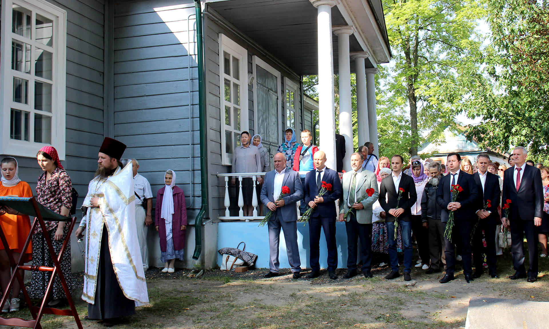 После праздничной Божественной литургии в церкви Успения Пресвятой Богородицы и литии в память об Алексее Константиновиче и Софье Андреевне Толстых, которую отслужил настоятель храма отец Александр Дроздов, члены делегации возложили цветы к усыпальнице Толстых.