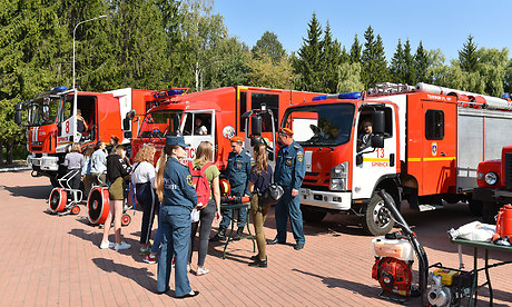 Ребята увидели технику и оборудование пожарно-спасательных подразделений, показательные выступления кинологического расчета, приемы и способы дрессировки собак, познакомились с учебно-материальной базой Учебно-методического центра по ГОЧС Брянской области, стендом по вопросам оказания первой помощи пострадавшим.